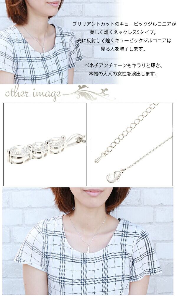 ブリリアントカットのキュービックジルコニアが美しく煌くネックレス5タイプ。