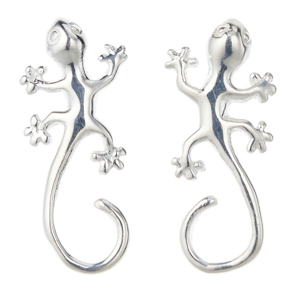 ホワイトがかったシルバーのとかげデザインスタッドピアス。