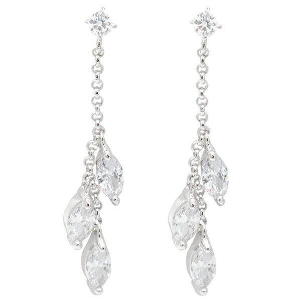 ピアス レディース リーフモチーフ キュービックジルコニア3粒が耳元でキラキラ揺れるぶら下がりタイプのピアス チタン製ポスト メール便 送料無料 金属アレルギー対応 春夏秋冬 大人気 あす楽