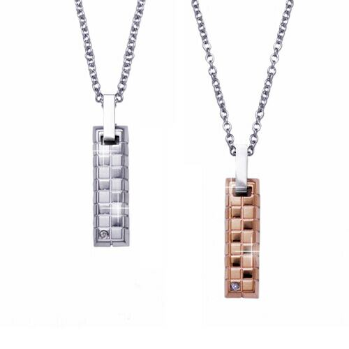 ネックレス メンズ レディース ペア 天然ダイヤモンドの格子プレートペアペンダント 天然ダイヤ 316Lサージカルステンレス使用 ギフトに最適 送料無料 送料込み 金属アレルギー対応 プレゼント 春夏秋冬 大人気