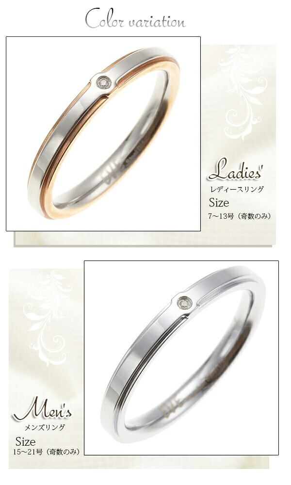 ペアリング メンズ レディース 1粒天然ダイヤモンド デザイン ゴールドxシルバーサージカル ステンレス316L使用 金属アレルギー対応 安心 送料無料 送料込み 春夏秋冬 大人気
