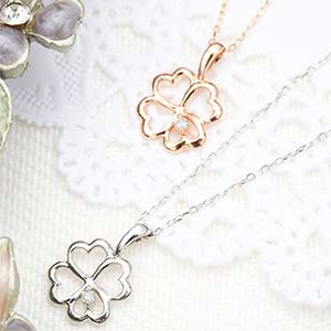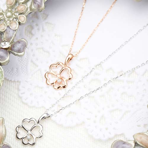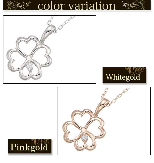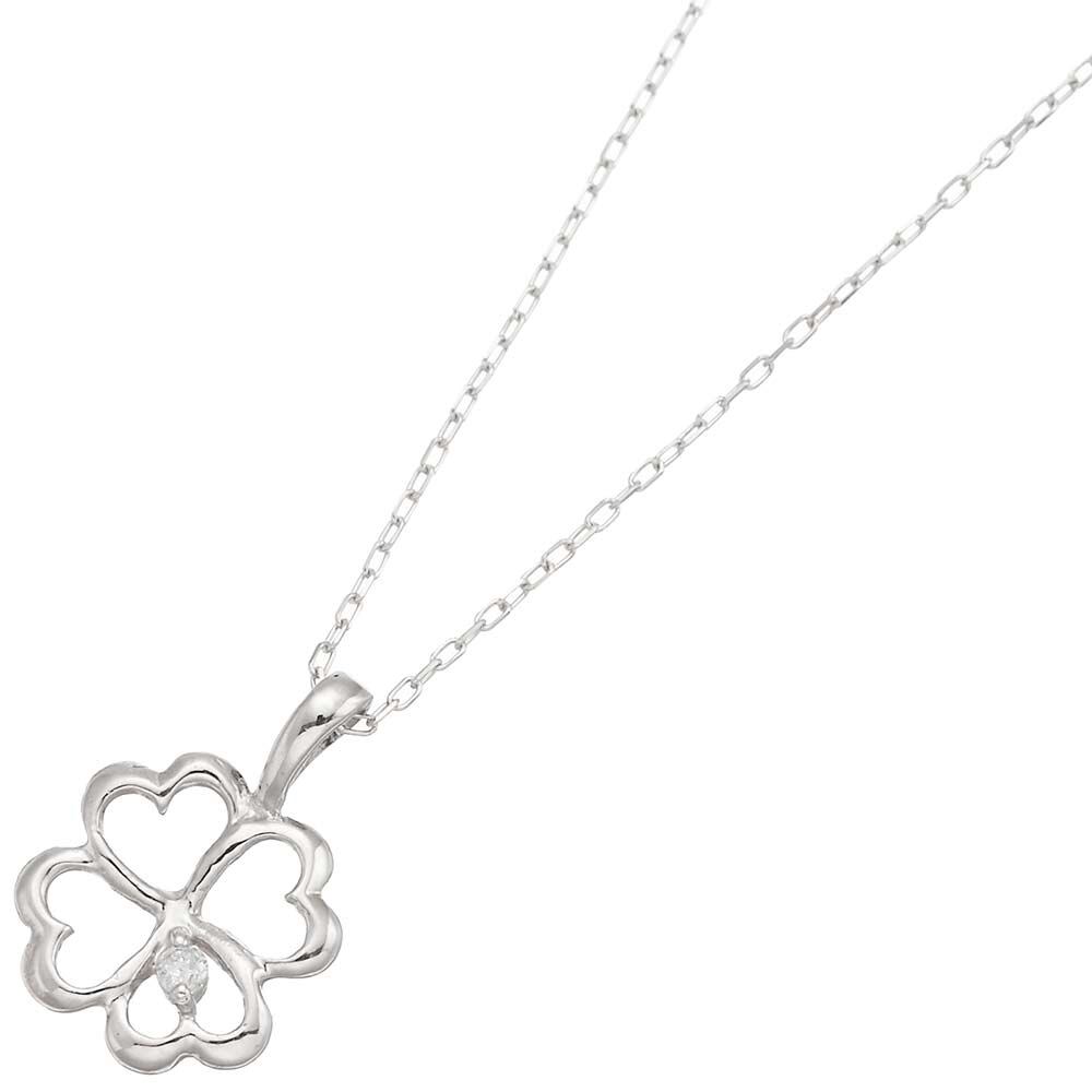 ネックレス レディース 天然ダイヤモンドが輝く クローバーモチーフペンダント 宝石鑑別書カード付き 送料無料 10Kホワイトゴールド 10Kピンクゴールド プレゼント 春夏秋冬 大人気