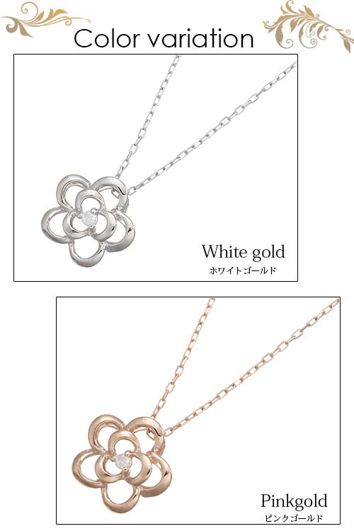 ネックレス レディース 天然ダイヤモンドが輝く フラワーモチーフペンダント 宝石鑑別書カード付き 送料無料 10Kホワイトゴールド 10Kピンクゴールド お花 プレゼント 春夏秋冬 大人気