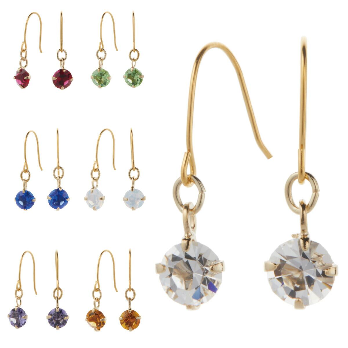誕生石カラーをイメージした上品な輝きが可愛いフックピアス。