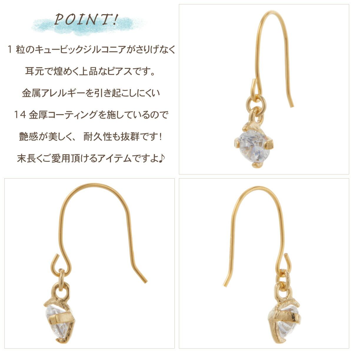 ピアス レディース 日本製 K14ゴールドフィルドフック K14GF 14金 キュービックジルコニア ワンストーン 一粒 石 2mm 3mm 揺れる ジプシー シンプル 金属アレルギー対応 上品 かわいい 大人可愛い 誕生日 記念日 プレゼント ギフト メール便送料無料