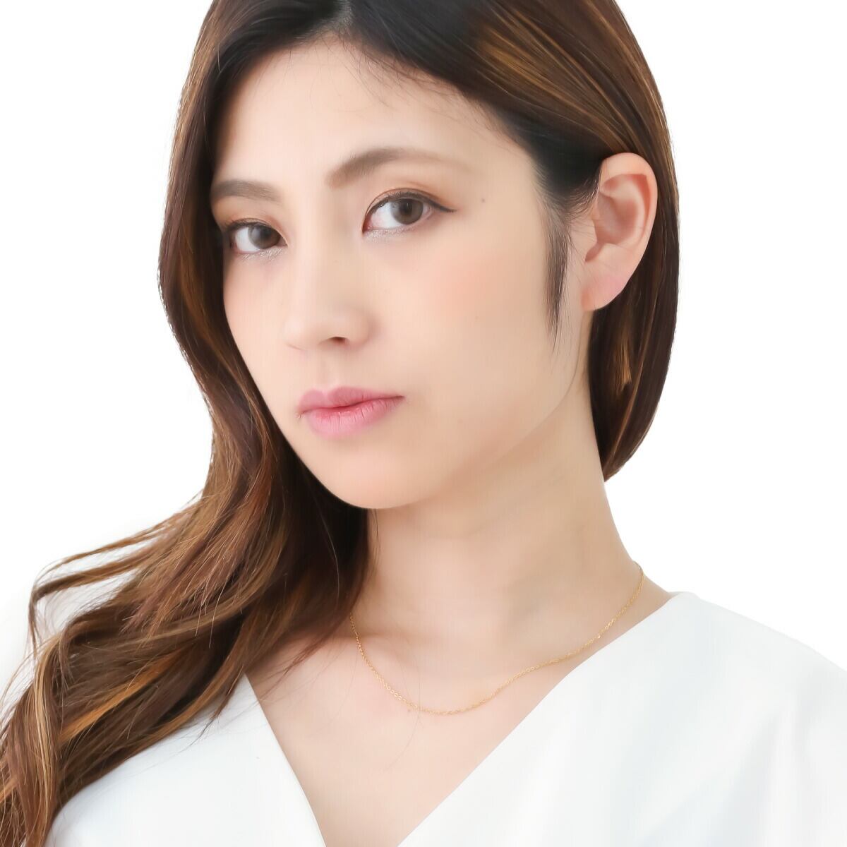 繊細でさりげない存在感を与えるアズキチェーンのネックレス。