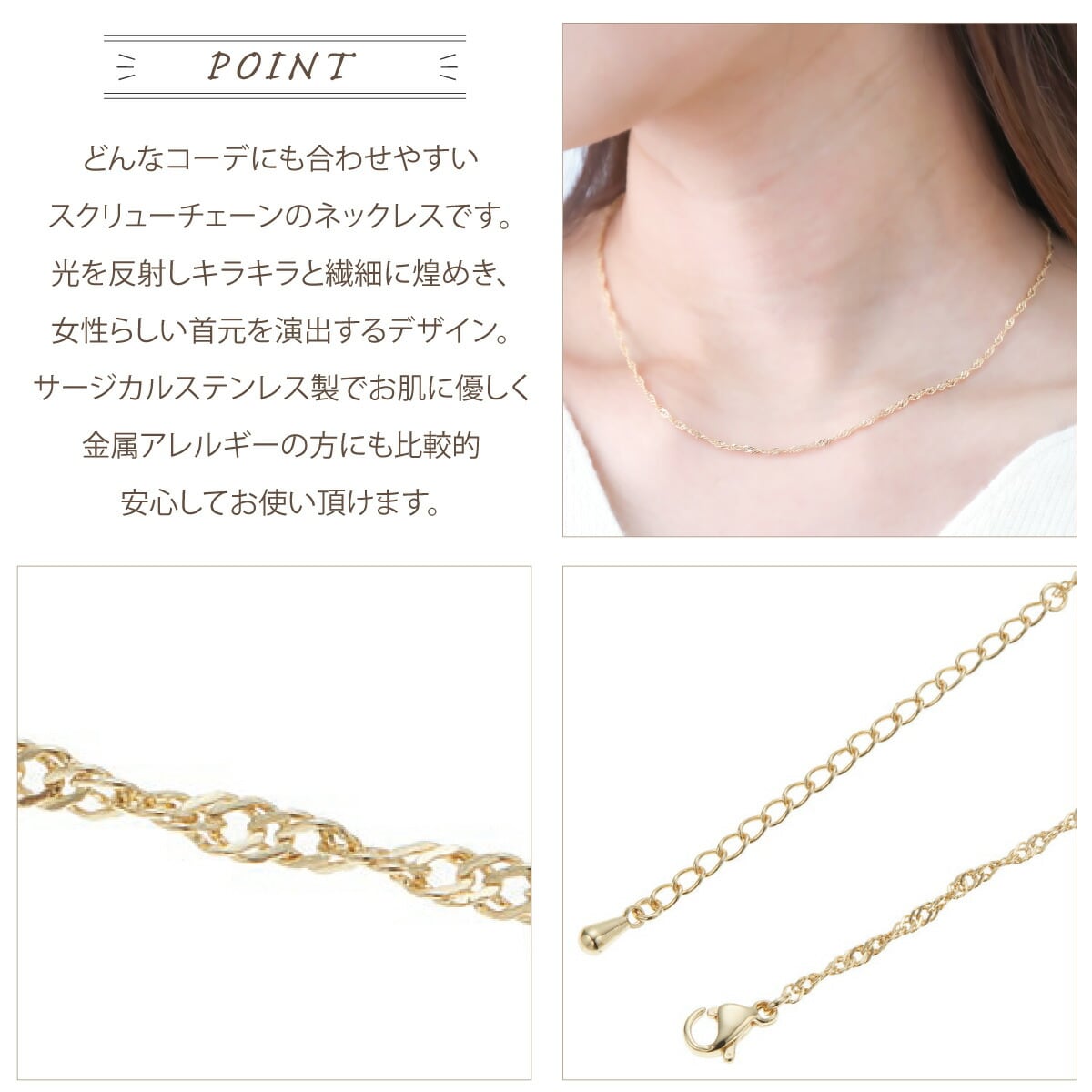 ネックレス ペンダント レディース サージカルステンレス製 スクリューチェーン キラキラ シンプル 華奢 細身 お肌に優しい 金属アレルギー対応 金アレ デイリー 誕生日 記念日 プレゼント ギフト メール便送料無料