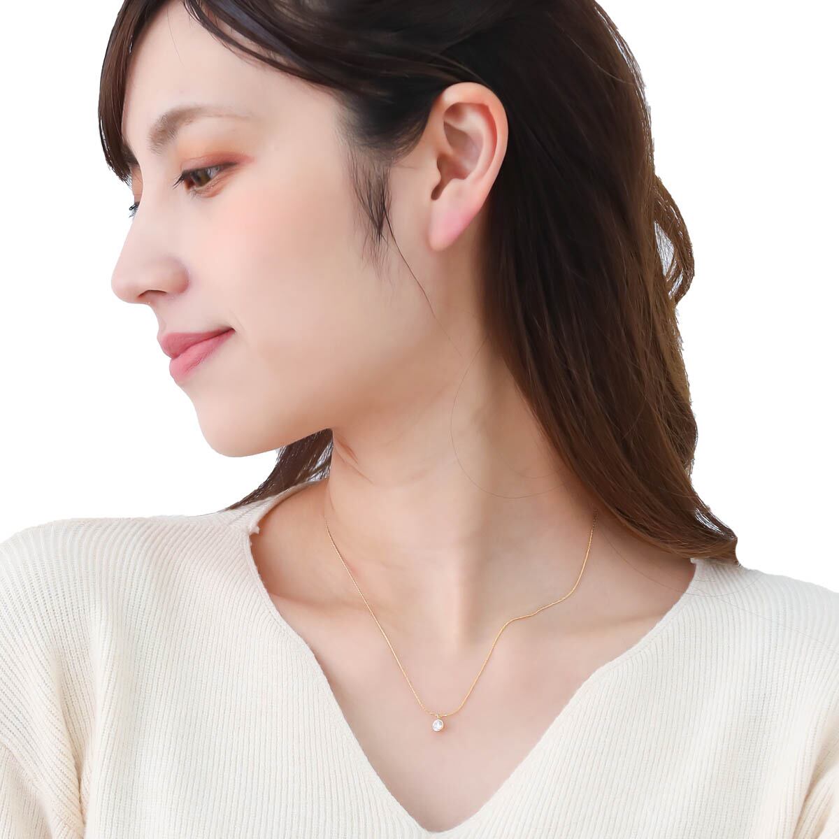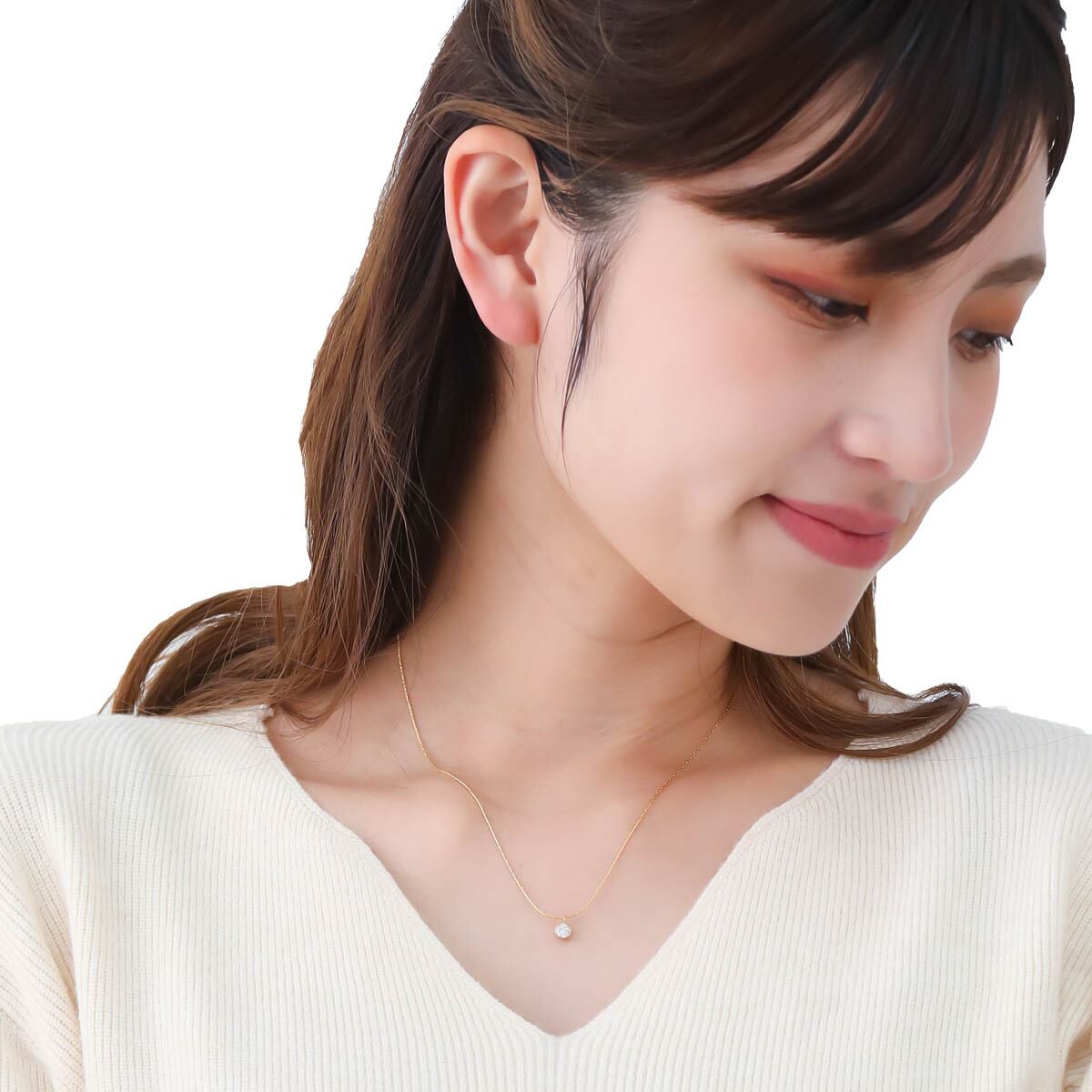 胸元に華やかな印象を与えてくれる、一粒ネックレス。