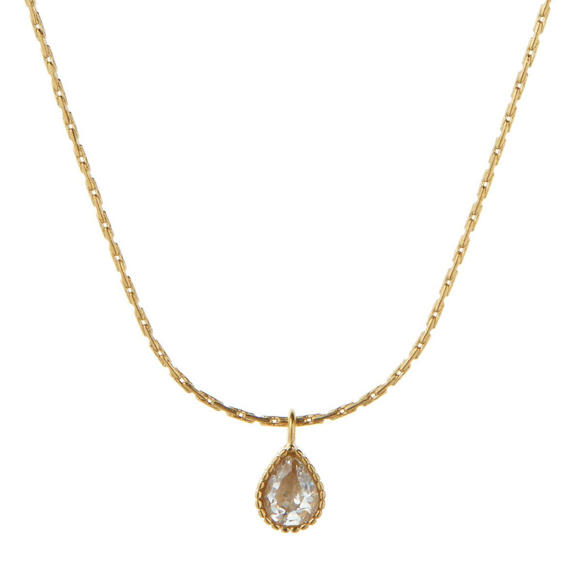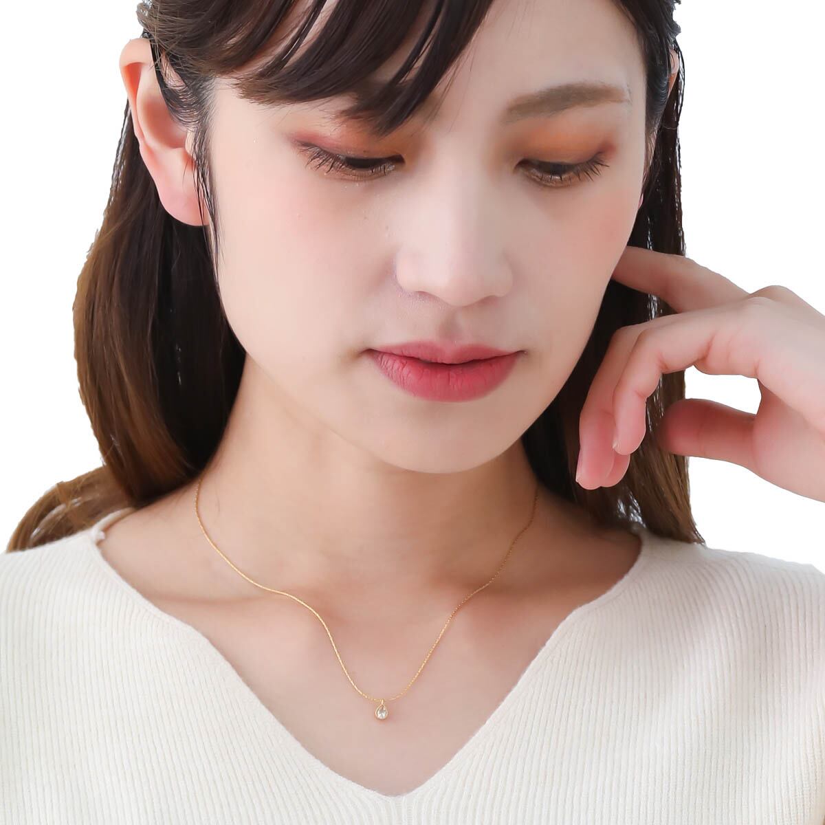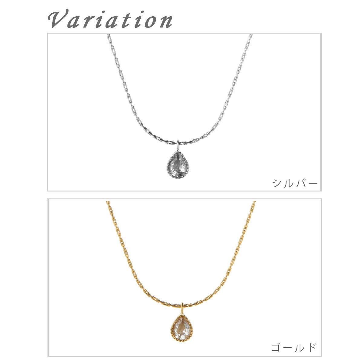 胸元に華やかな印象を与えてくれる、ドロップデザインのネックレス。