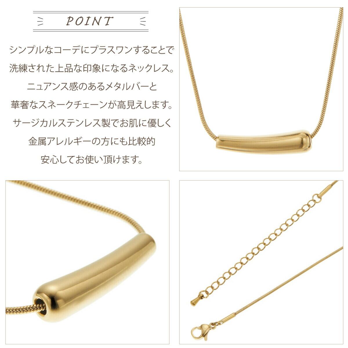 ネックレス ペンダント レディース サージカルステンレス製 メタルバー カーブ スネークチェーン シンプル 華奢 細身 お肌に優しい 金属アレルギー対応 金アレ かわいい オフィス デイリー 誕生日 記念日 プレゼント ギフト メール便送料無料