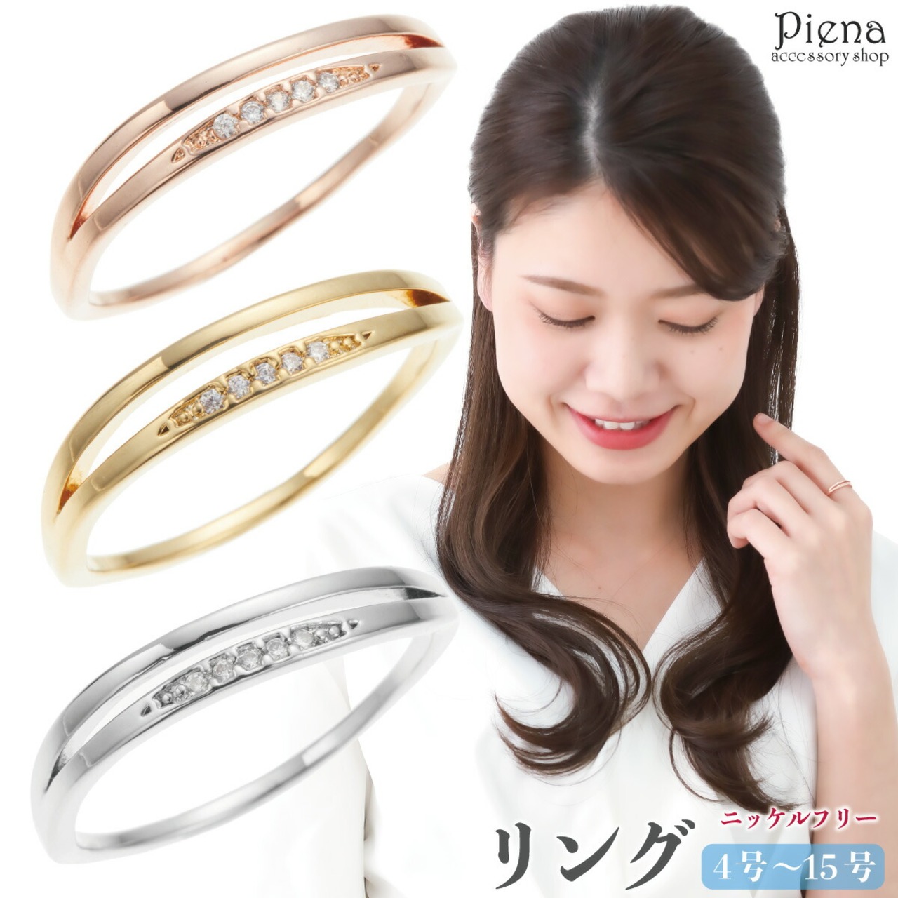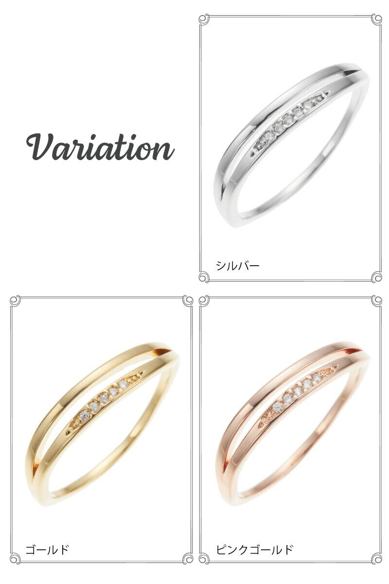 リング レディース キュービックジルコニア ニッケルフリー 二連風 重ねづけ風 キラキラ 細身 華奢 シンプル お肌に優しい 金属アレルギー対応 上品 かわいい 大人可愛い パーティー 結婚式 二次会 誕生日 記念日 プレゼント ギフト メール便送料無料
