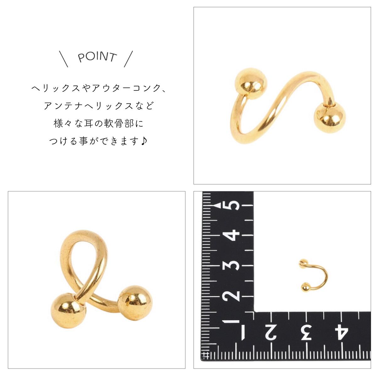 ボディピアス レディース メンズ サージカルステンレス製 18G 10mm スパイラルバーベル 螺旋 丸玉 ボール 軟骨 ヘリックス アウターコンク 片耳用 1個売り お肌に優しい 低金属アレルギー 付けっぱなし 錆びにくい シンプル カジュアル プレゼント ギフト メール便送料無料