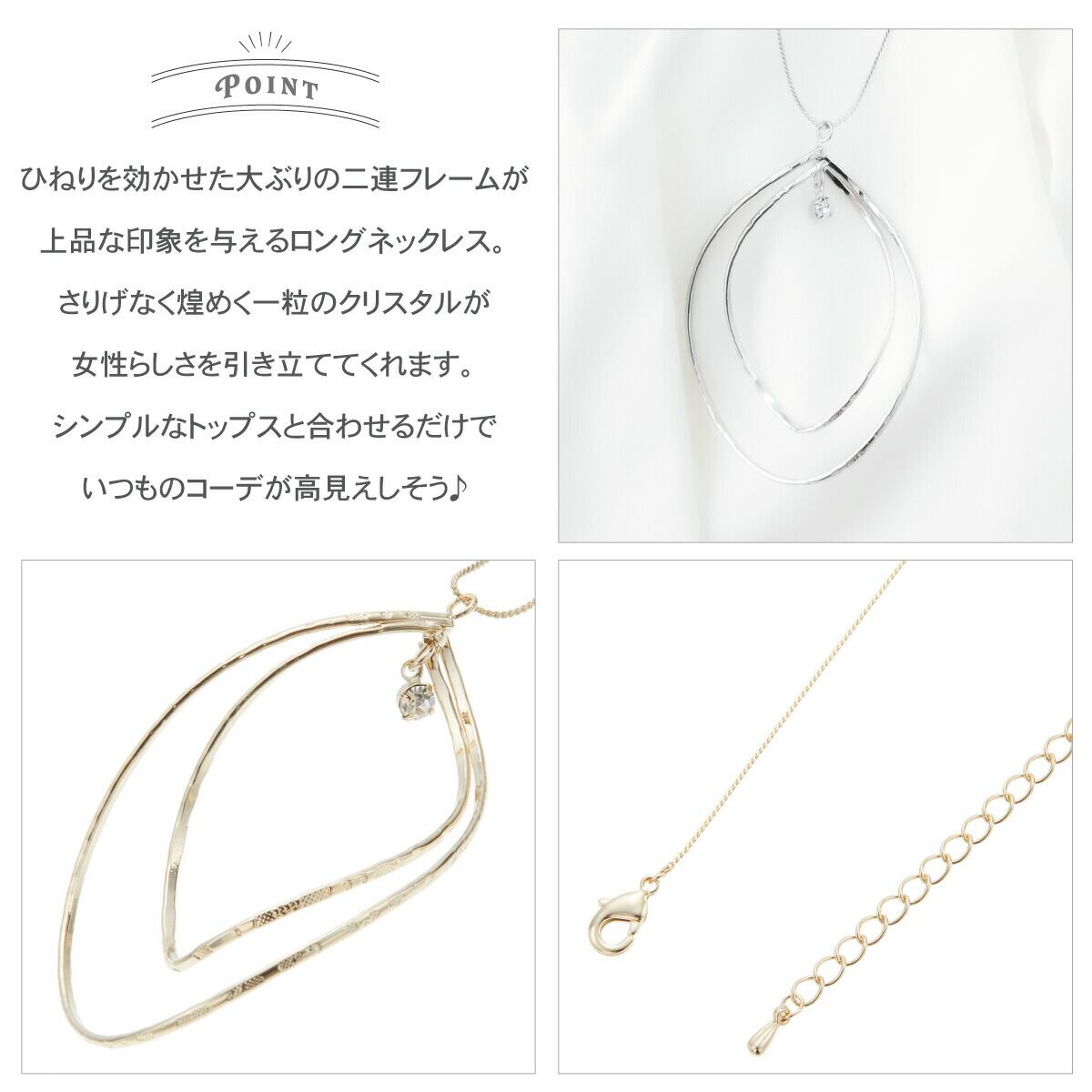 ネックレス ペンダント レディース ニッケルフリー クリスタル 一粒 ロング 長い ひねり ツイスト 二連 フレーム ドロップ 華奢 細身 オシャレ ドレスに合う パーティー 結婚式 二次会 誕生日 記念日 プレゼント ギフト メール便送料無料