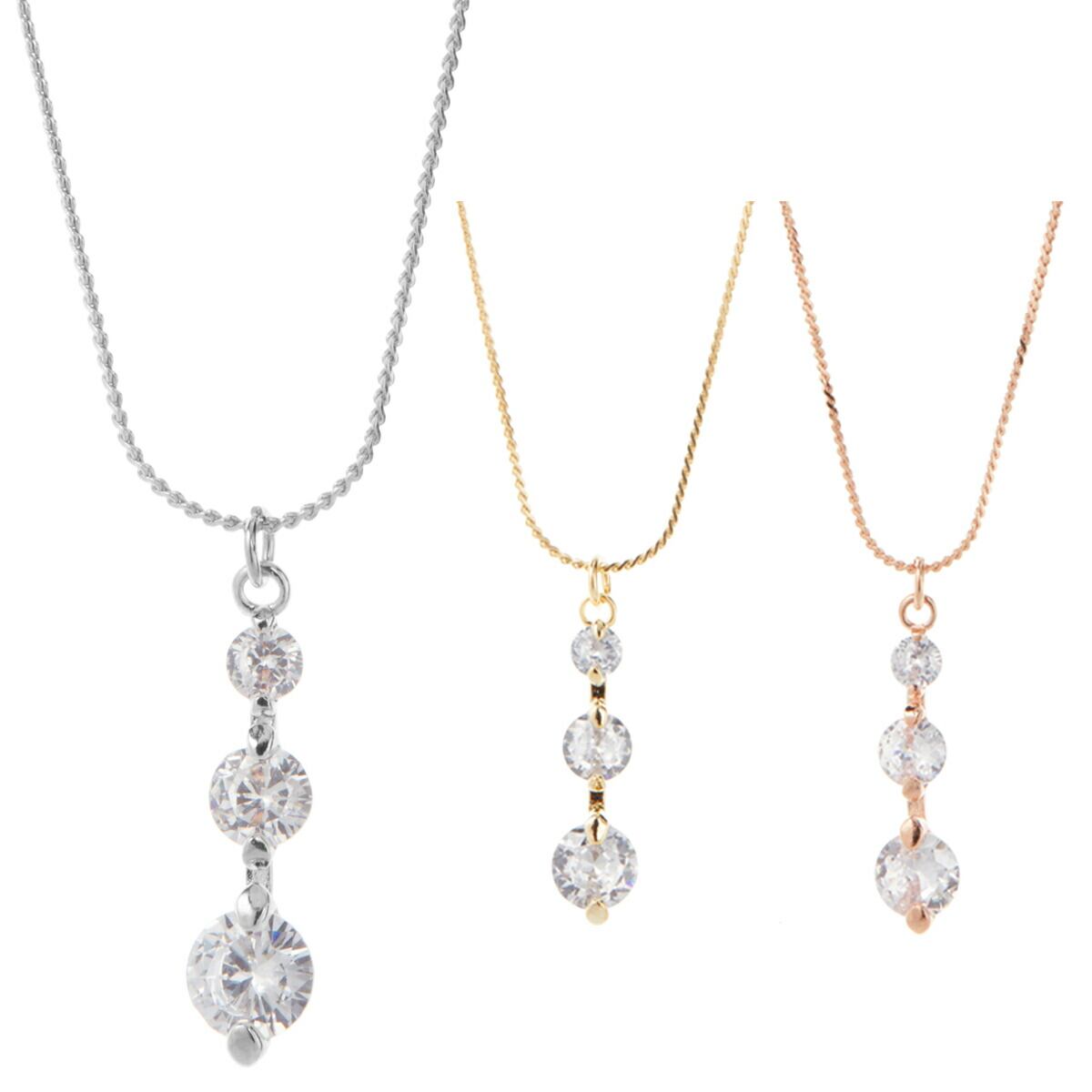 ネックレス レディース ニッケルフリー キュービックジルコニア 3石 スエッジ 揺れる 輝く 煌めく キラキラ お肌に優しい 金属アレルギー対応 シンプル 上品 可愛い 綺麗 エレガント 誕生日 記念日 プレゼント ギフト メール便送料無料