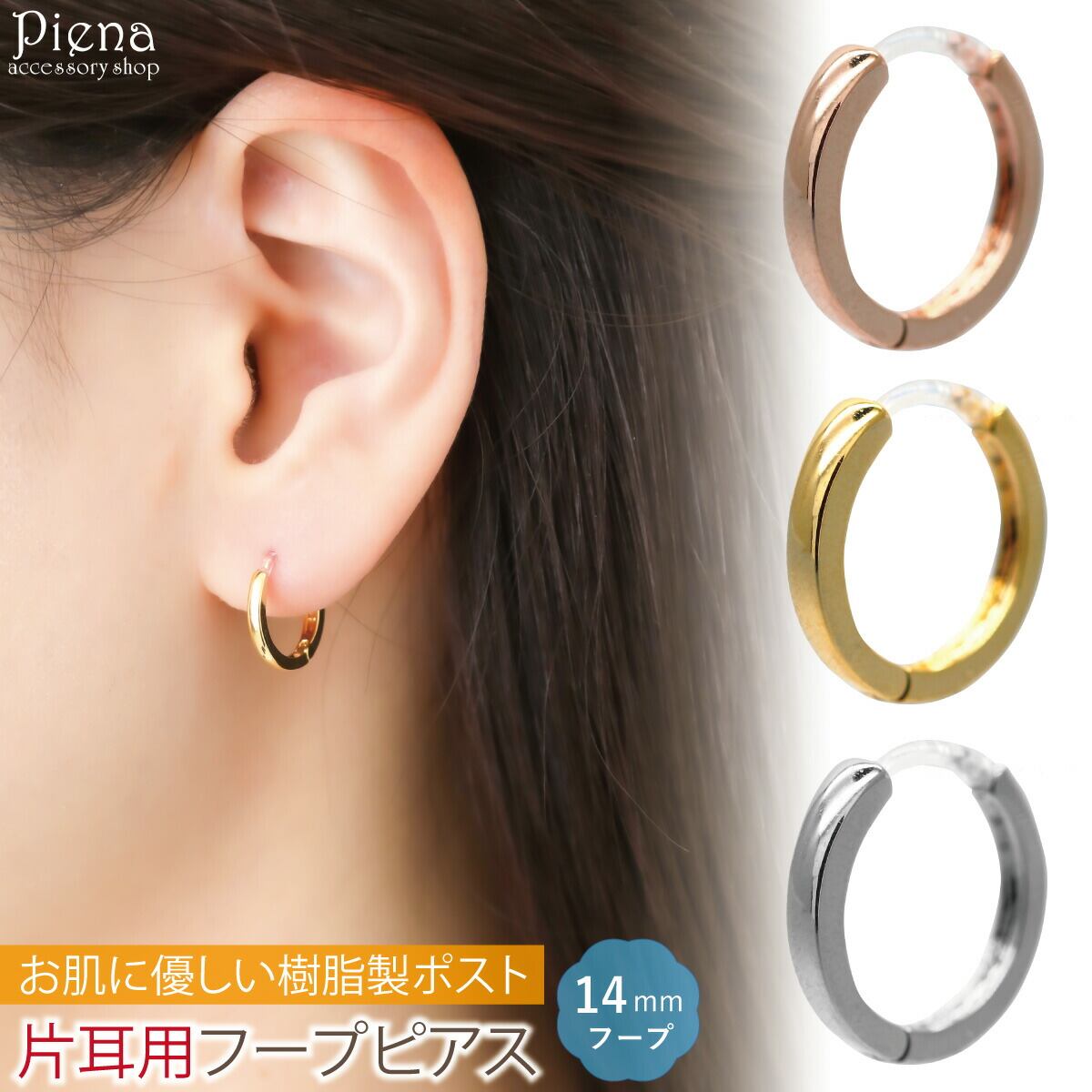 フープピアス レディース メンズ 片耳用 1個売り 樹脂ピアス 樹脂製ポスト 直径14mm ミニ 小さめ 中折れ ワンタッチ シンプル お肌に優しい 金属アレルギー対応 上品 かわいい オフィス パーティー 誕生日 記念日 プレゼント ギフト メール便送料無料
