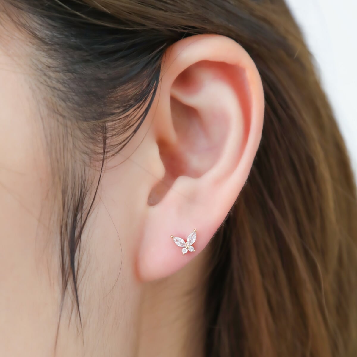 チタン製ポストを使用したお肌に優しい蝶のピアス。