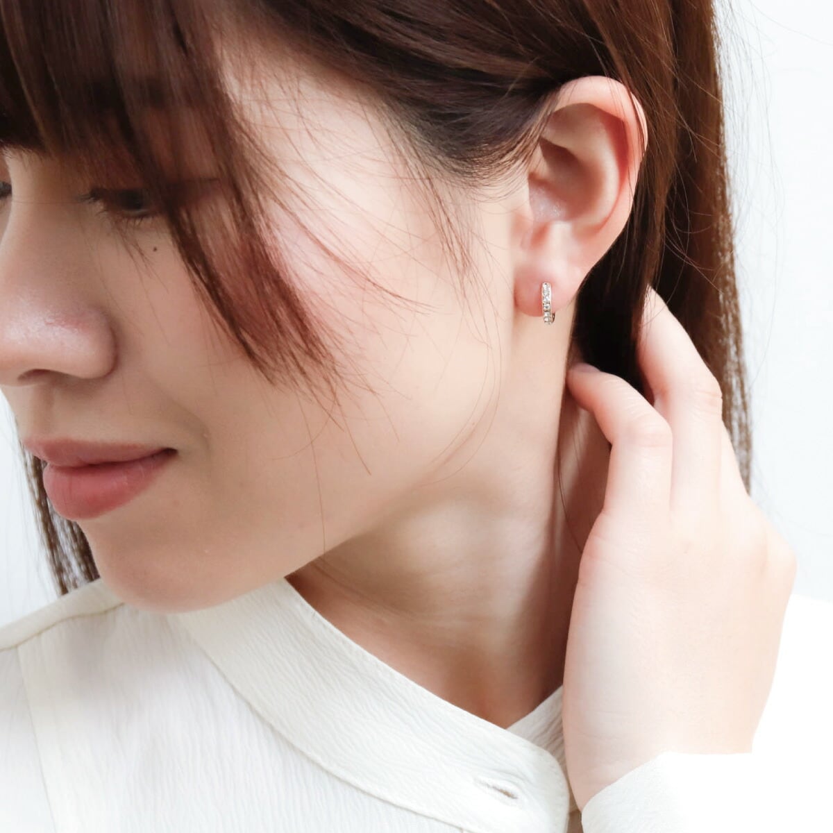 ピアス フープ レディース 両耳用 ラインストーン 甲丸 ミニ 小さめ 中折れ ワンタッチ キラキラ シンプル お肌に優しい 金属アレルギー対応 オフィス パーティー 結婚式 誕生日 記念日 プレゼント ギフト メール便送料無料