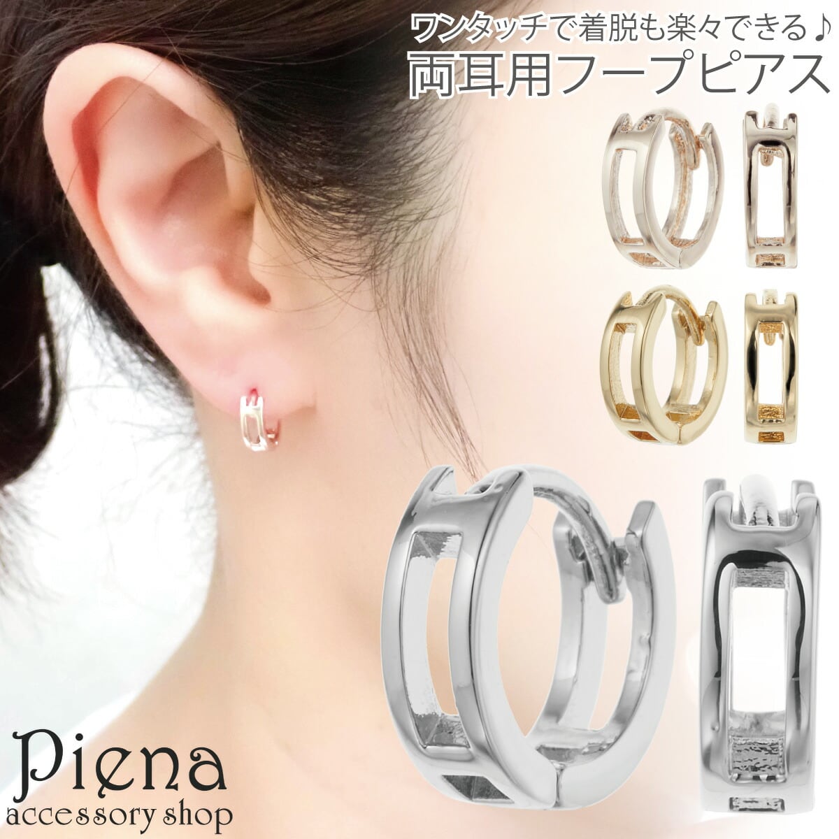 フープピアス レディース 両耳用 二連風 ダブルライン 抜け感 ミニ 小さめ 中折れ ワンタッチ シンプル お肌に優しい 金属アレルギー対応 パーティー 結婚式 誕生日 記念日 プレゼント ギフト メール便送料無料