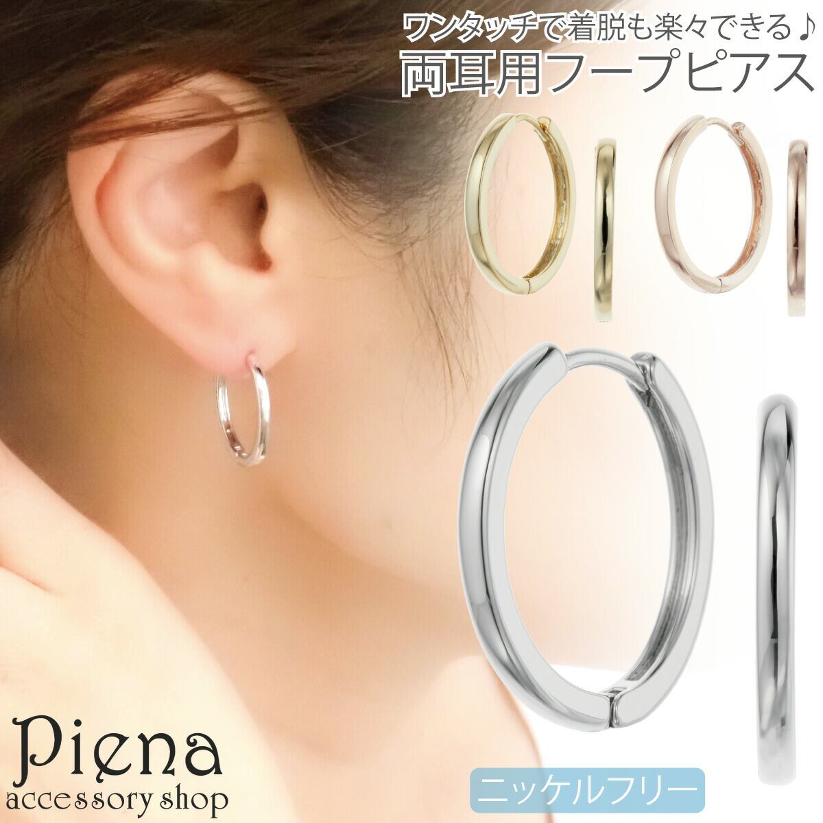 フープピアス レディース 両耳用 ニッケルフリー 華奢 細身 中折れ ワンタッチ シンプル お肌に優しい 金属アレルギー対応 パーティー 結婚式 誕生日 記念日 プレゼント ギフト メール便送料無料
