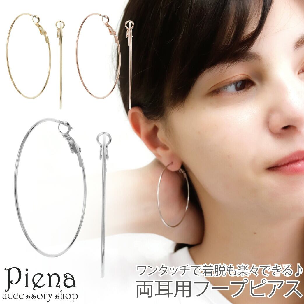 フープピアス つけっぱなし レディース サージカルステンレス製ポスト 両耳用 ビッグフープ 大ぶり 直径約5cm 華奢 細身 ワンタッチ シンプル お肌に優しい 金属アレルギー対応 パーティー 結婚式 誕生日 記念日 プレゼント ギフト メール便送料無料