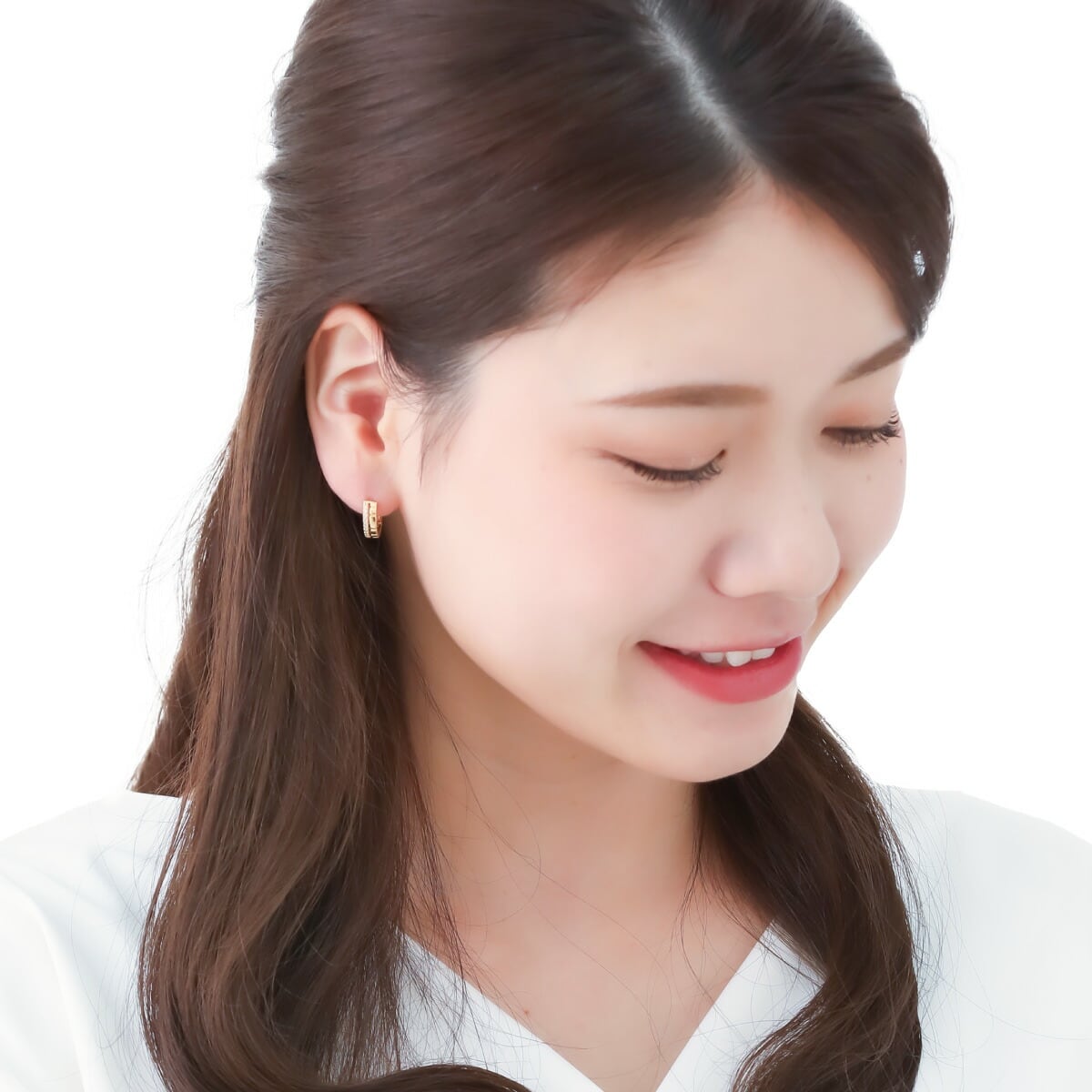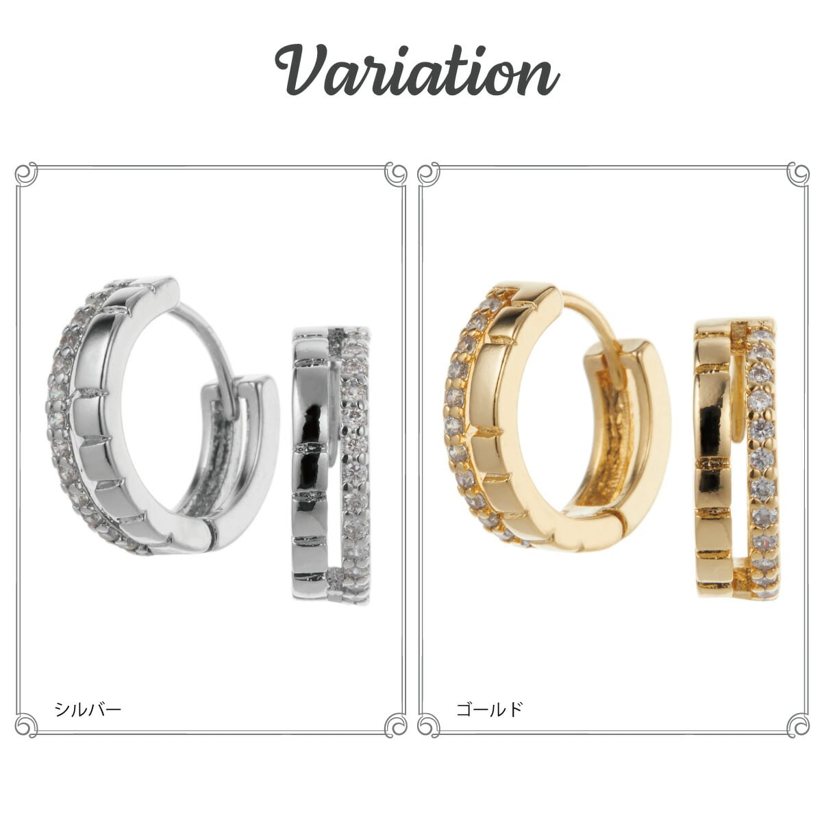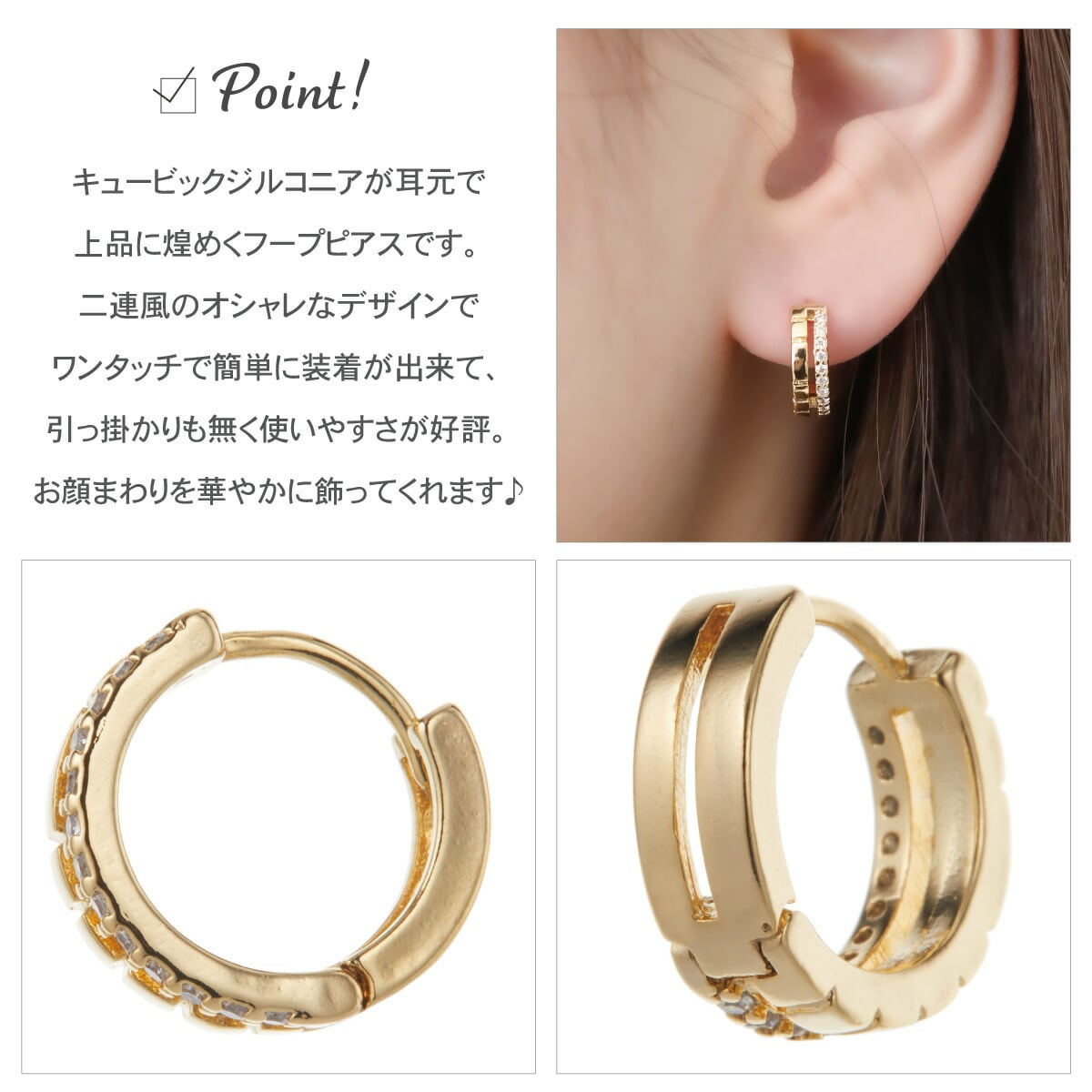 ピアス レディース フープ キュービックジルコニア ハーフエタニティ 2連風 重ねづけ キラキラ 中折れ ワンタッチ 小さい ミニ シンプル 上品 かわいい 大人可愛い オフィス パーティー 結婚式 誕生日 記念日 プレゼント ギフト メール便送料無料