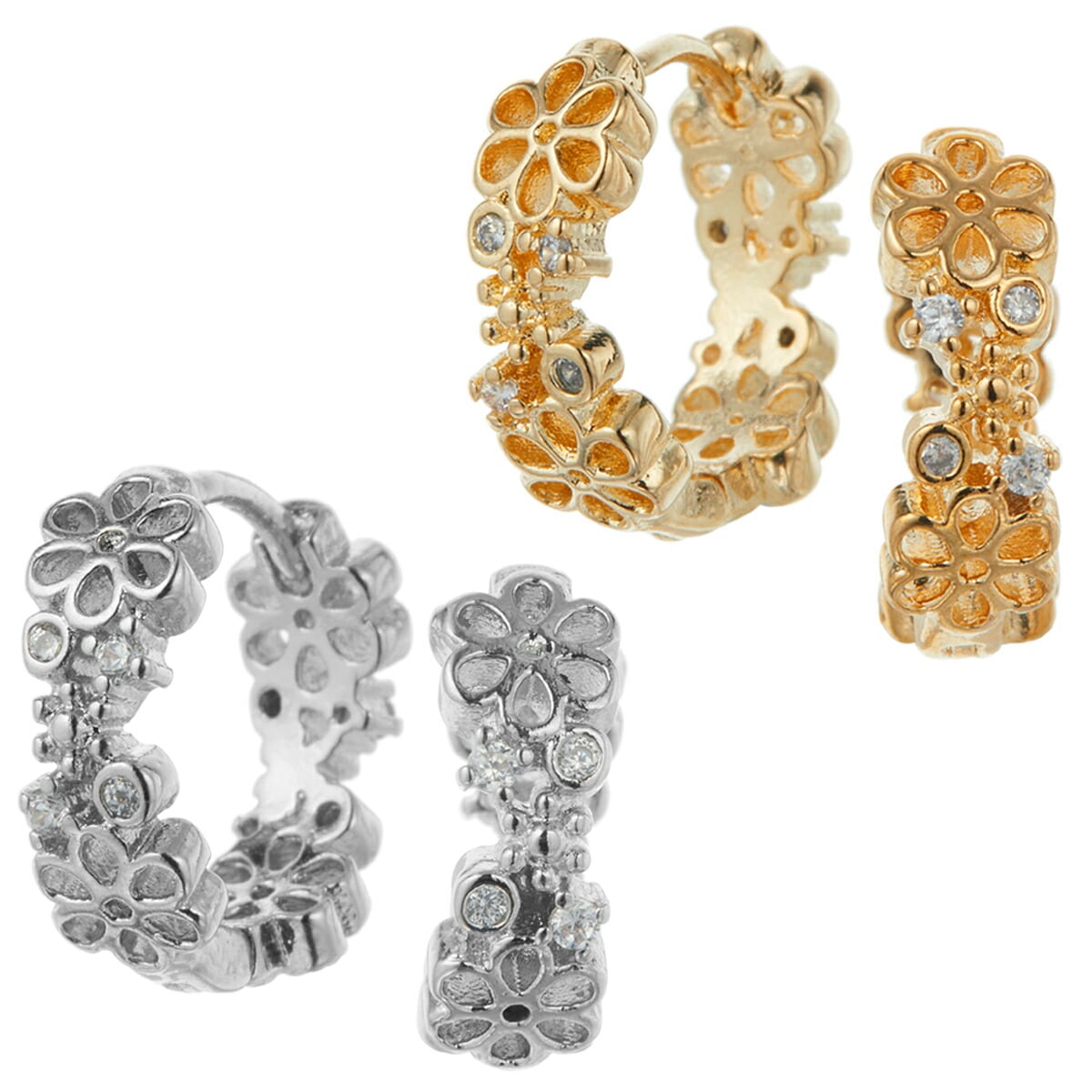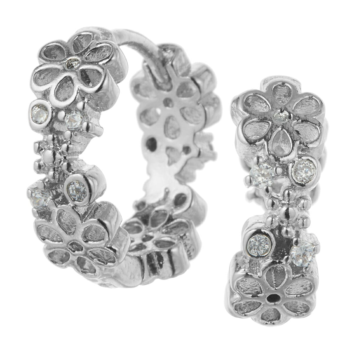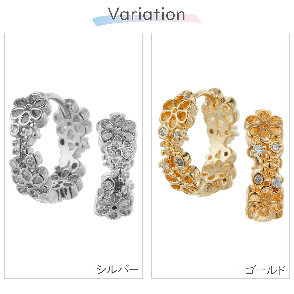 フープピアス レディース 両耳用 ニッケルフリー キュービックジルコニア 小さめ 花 フラワー 可憐 中折れ キャッチレス ワンタッチ お肌に優しい 金属アレルギー対応 煌めく 可愛い 上品 エレガント デイリー 誕生日 記念日 プレゼント ギフト メール便送料無料