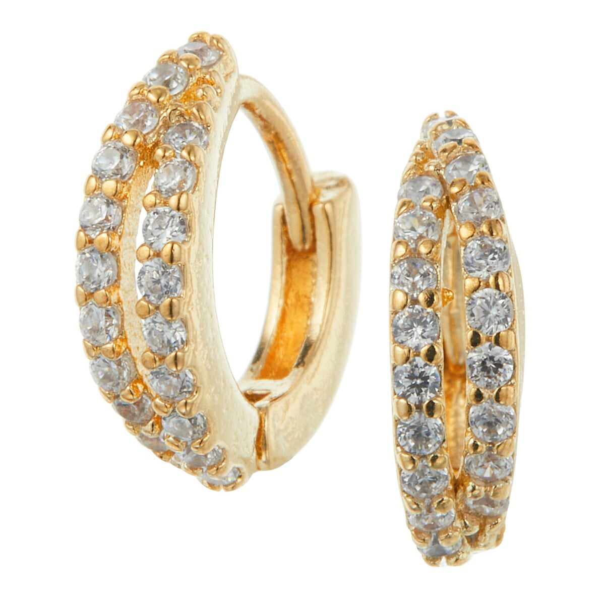 フープピアス レディース 両耳用 マイクロセッティング ニッケルフリー キュービックジルコニア 小さめ 2連風 中折れ キャッチレス ワンタッチ お肌に優しい 金属アレルギー対応 煌めく エレガント 上品 パーティー 誕生日 記念日 プレゼント ギフト メール便送料無料