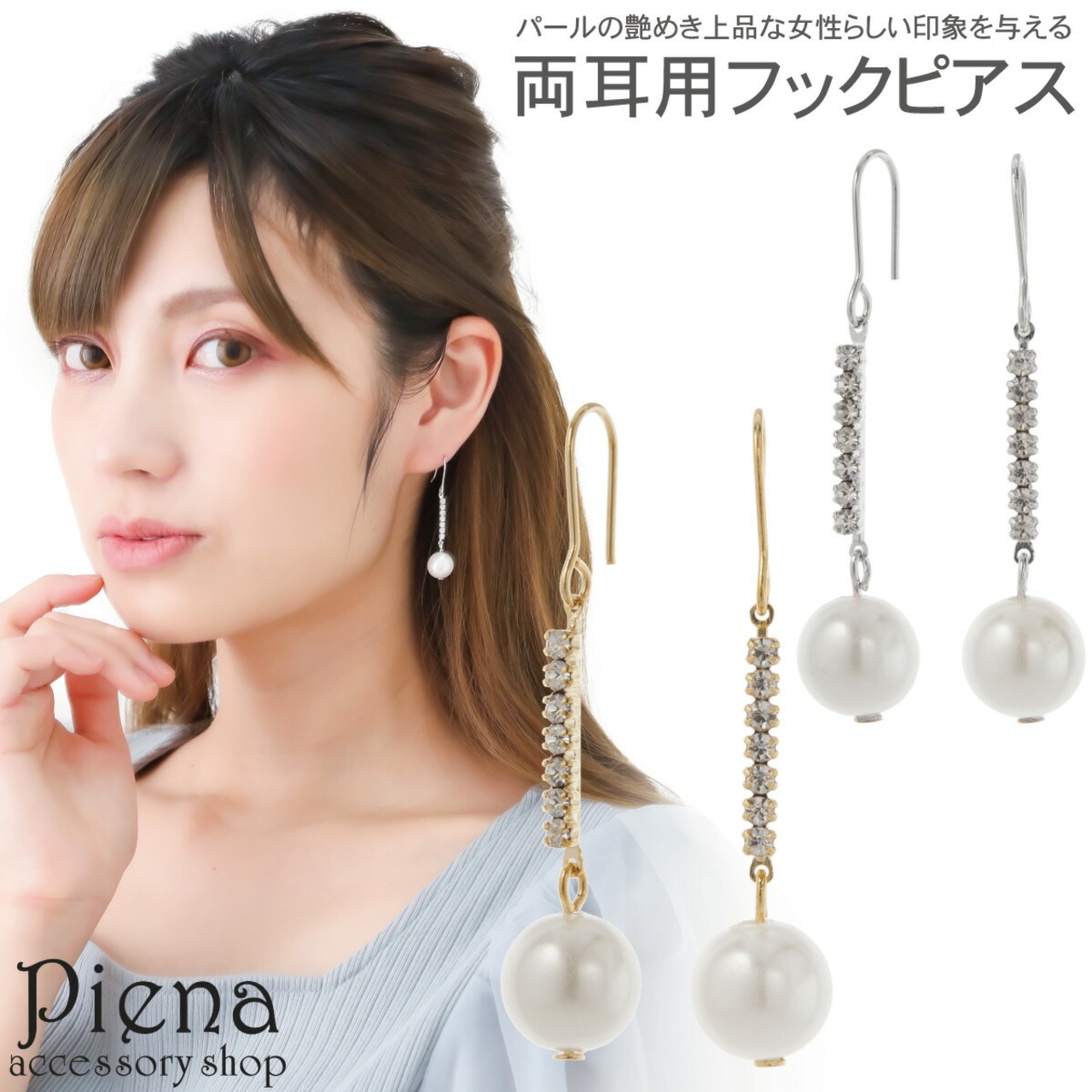 フックピアス レディース 両耳用 パール 真珠 ロング クリスタル 縦ライン ドレスに合う 揺れる キラキラ パーティー オシャレ 上品 かわいい 誕生日 記念日 プレゼント ギフト メール便送料無料