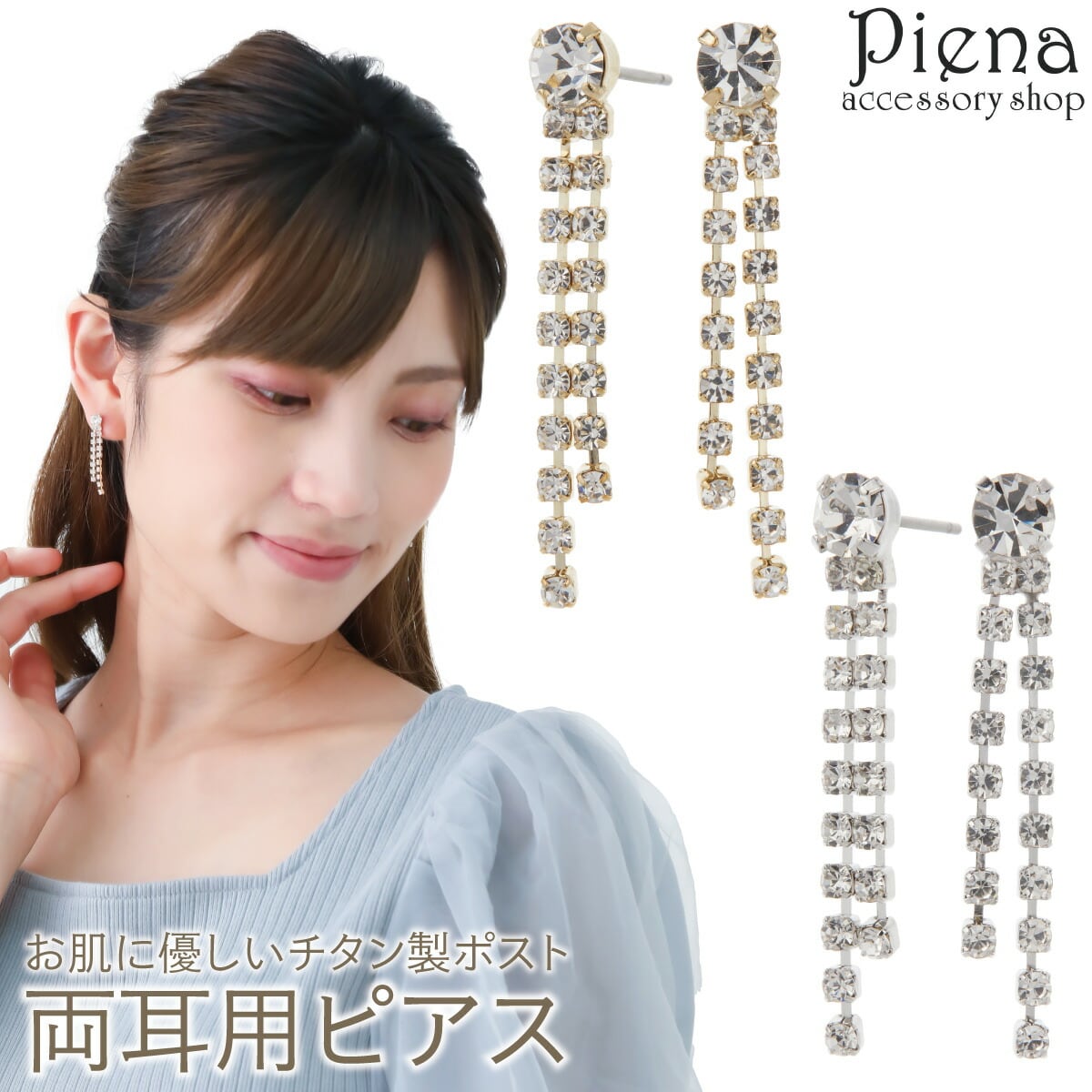 ピアス レディース 両耳用 チタン製ポスト クリスタル ライン2本 ロング 縦長 揺れる お肌に優しい 金属アレルギー対応 金アレ 上品 かわいい オシャレ パーティー 誕生日 記念日 プレゼント ギフト メール便送料無料