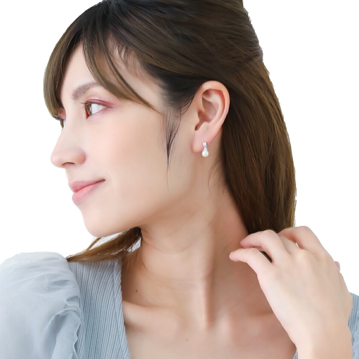 動くたびにパールが揺れるフェミニンなスタッドピアス。