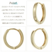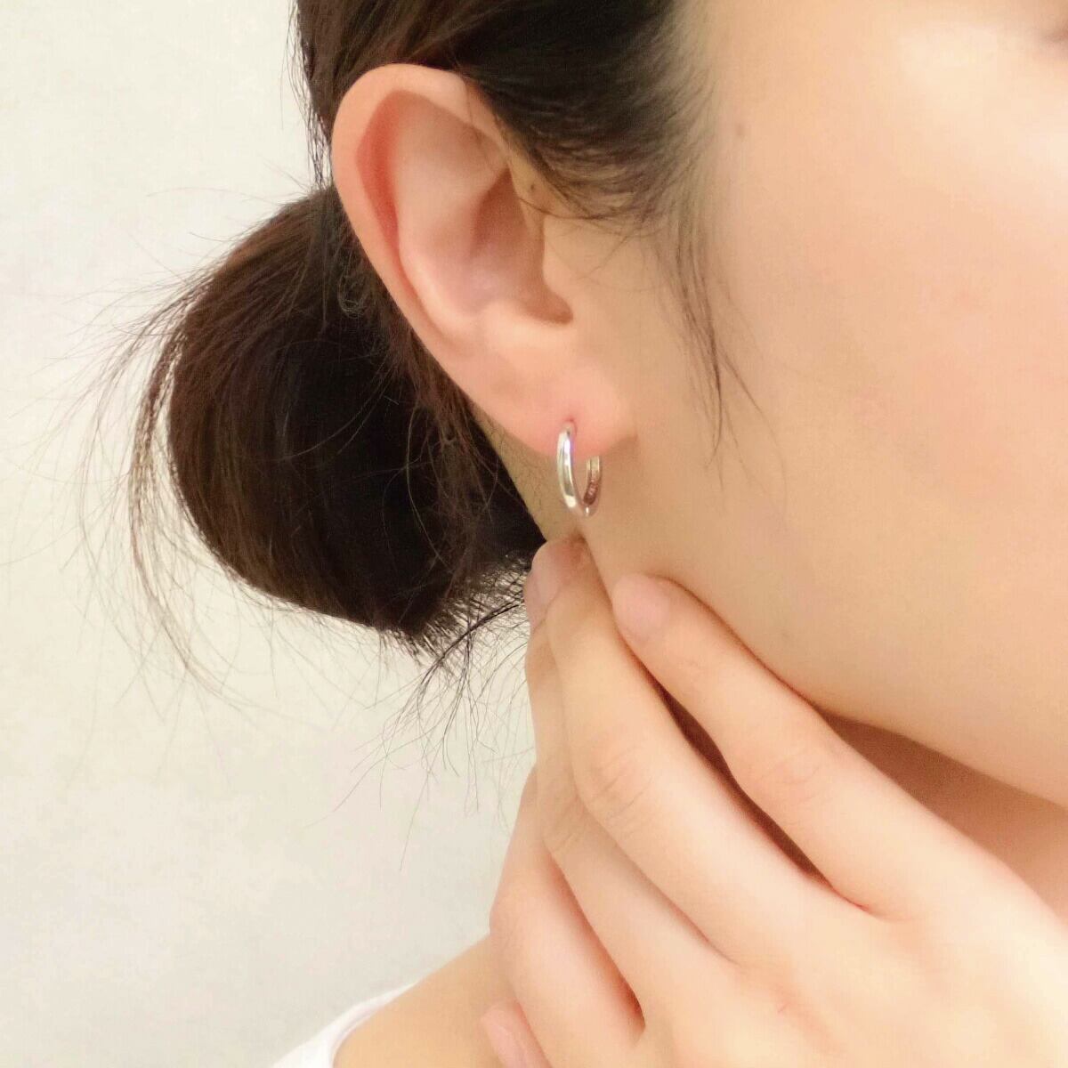 ワンタッチで簡単に装着出来て、引っ掛かりも無いので使いやすさが好評の中折れ フープピアスです。