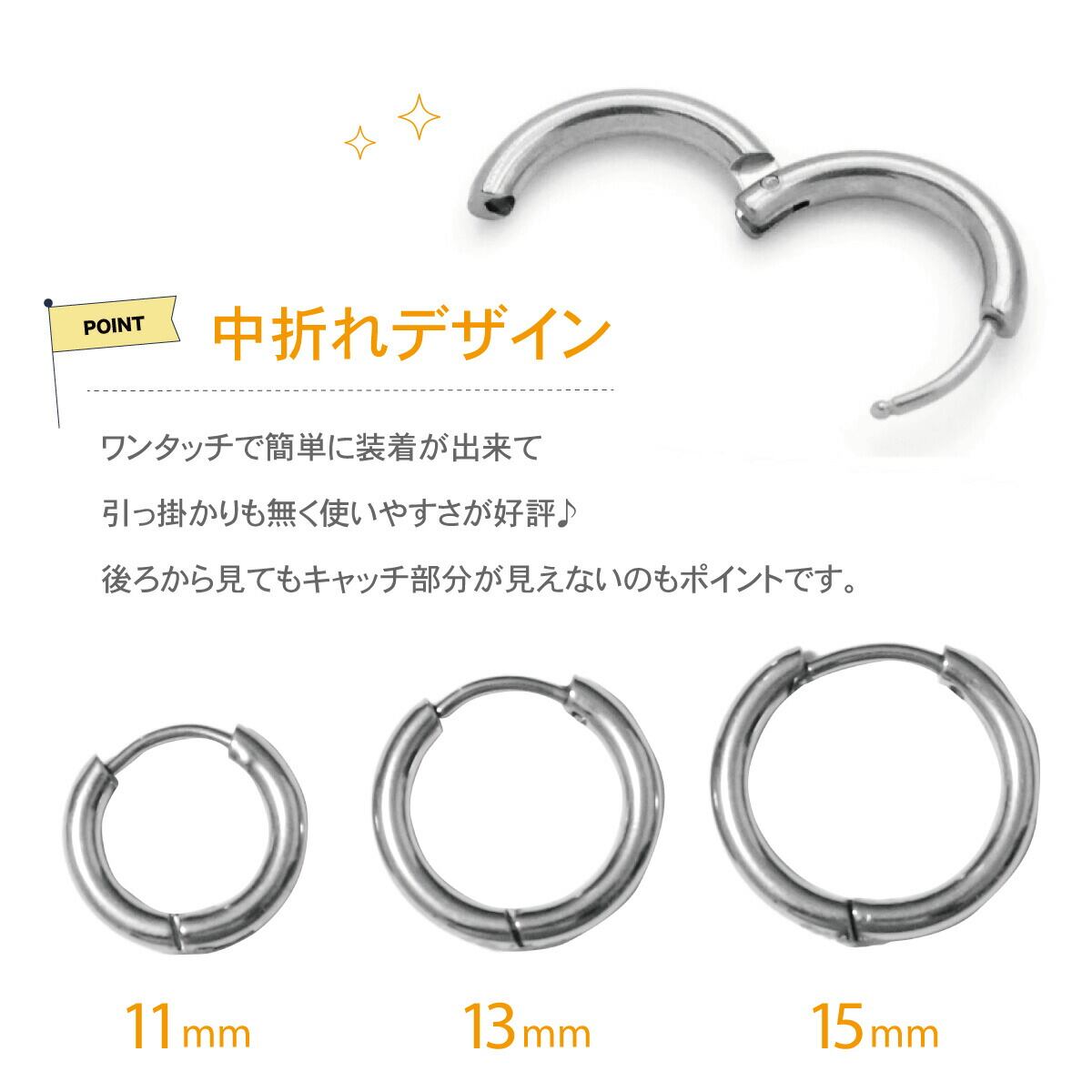 ピアス レディース メンズ サージカルステンレス製 フープ 甲丸 11mm 13mm 15mm 中折れ ワンタッチ シンプル お肌に優しい 金属アレルギー対応 つけっぱなし 錆びにくい 小さめ かわいい オフィス パーティー 結婚式 誕生日 記念日 プレゼント ギフト メール便送料無料