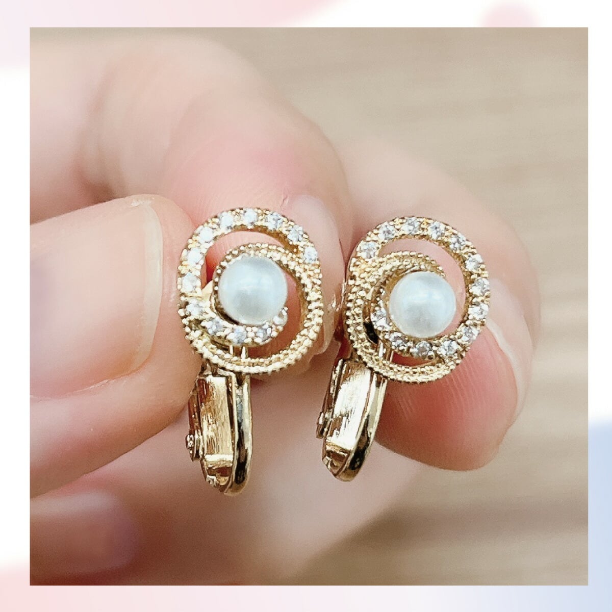 イヤリング レディース パール キュービックジルコニア ドレスに合う ラウンド サークル キラキラ シンプル 上品 オシャレ かわいい 誕生日 記念日 プレゼント ギフト メール便送料無料