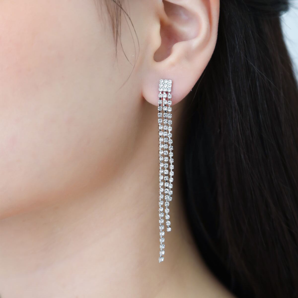 イヤリング レディース ラインストーン 3連 ライン 下がり 揺れる キラキラ ドレスに合う 華やか パーティー 上品 オシャレ かわいい 誕生日 記念日 プレゼント ギフト メール便送料無料