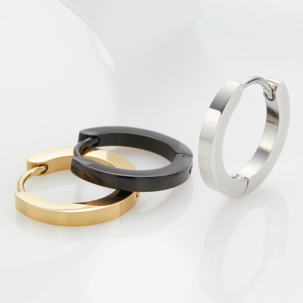 フープピアス レディース メンズ サージカルステンレス製 片耳用 1個売り 平打ち 16mm 中折れ ワンタッチ シンプル お肌に優しい 金属アレルギー対応 つけっぱなし 錆びにくい 誕生日 記念日 プレゼント ギフト メール便送料無料