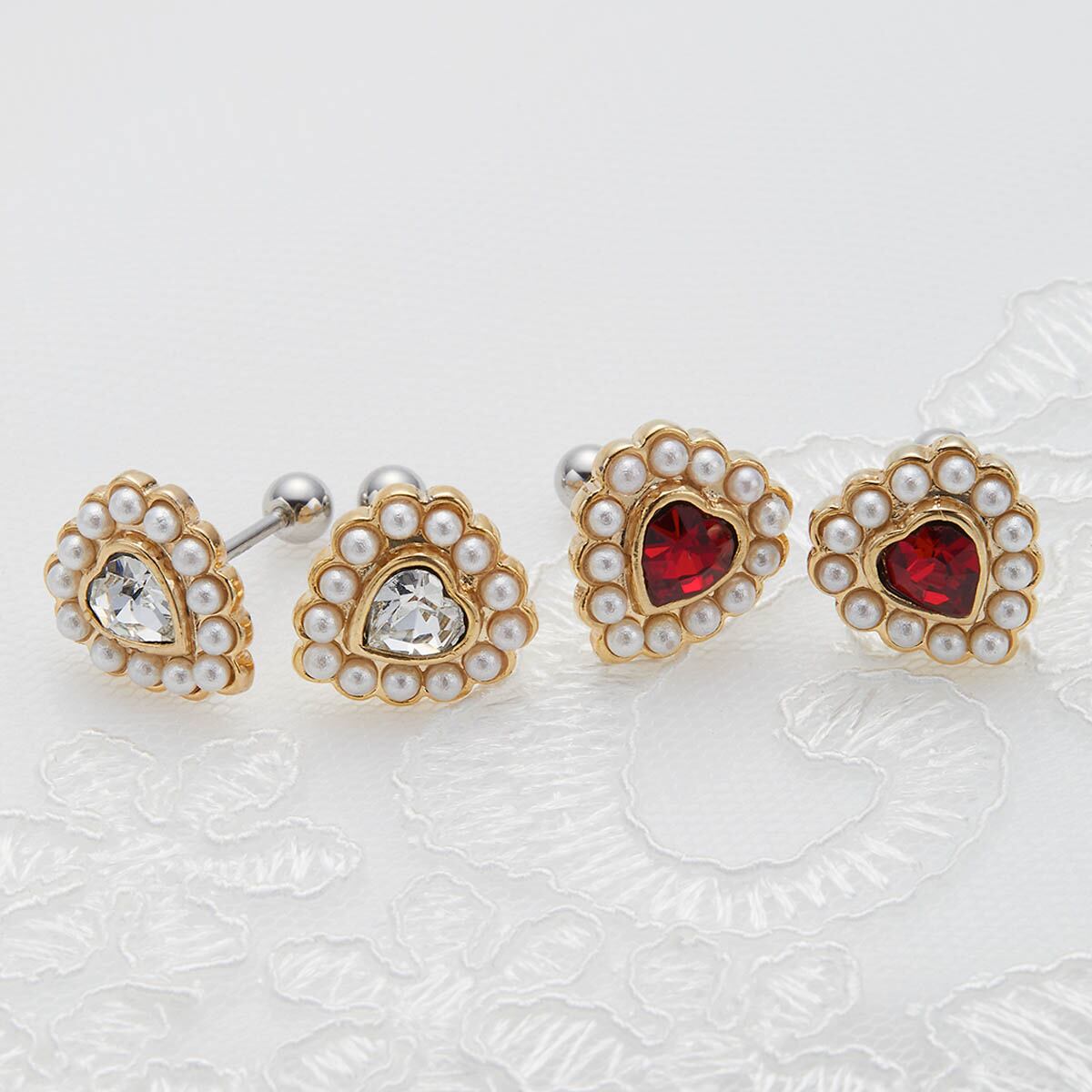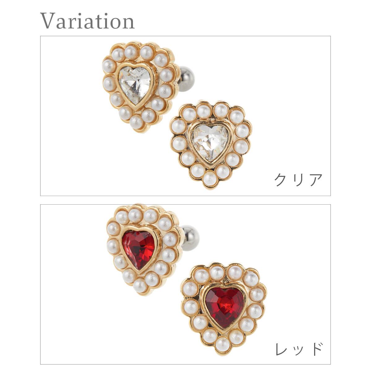 ボディピアス スタッドピアス レディース 18G サージカルステンレス316L ハート パール ガラス ストレートバーベル キラキラ シンプル 耳たぶ 軟骨 お肌に優しい 金属アレルギー対応 オシャレ かわいい 大人可愛い 揺れる プレゼント ギフト メール便送料無料