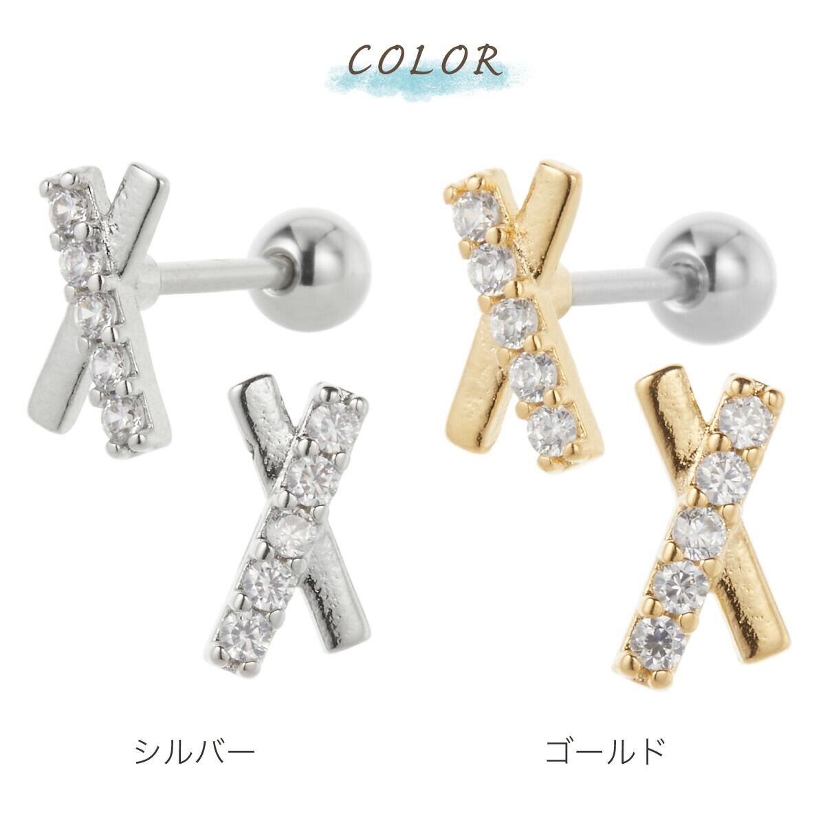 ボディピアス つけっぱなし レディース サージカルステンレス316L キュービックジルコニア クロス 交差 ストレートバーベル キラキラ シンプル 耳たぶ 軟骨 お肌に優しい 金属アレルギー対応 オシャレ かわいい 大人可愛い プレゼント ギフト メール便送料無料