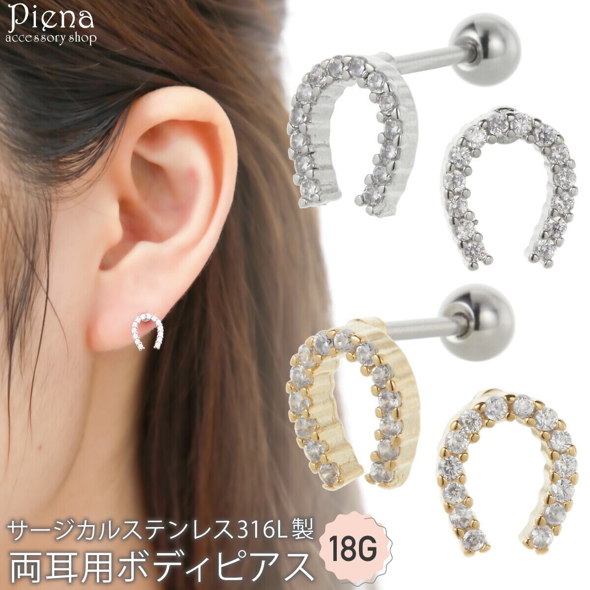 ボディピアス つけっぱなし 18G レディース サージカルステンレス316L 馬蹄 ホースシュー 下向き 逆U字型 キラキラ 耳たぶ 軟骨 お肌に優しい 金属アレルギー対応 金アレ オシャレ かわいい 大人可愛い プレゼント ギフト メール便送料無料