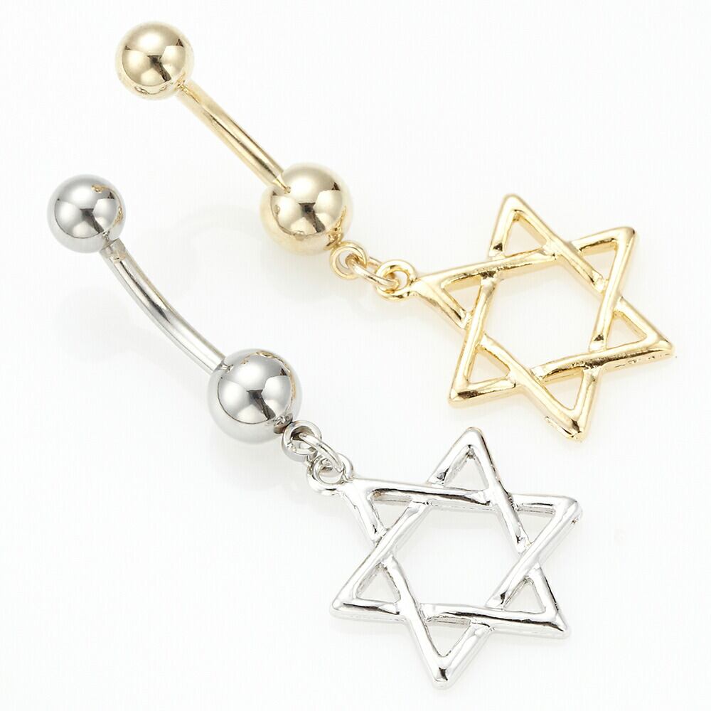 ボディピアス つけっぱなし レディース 六芒星モチーフが揺れる14Gへそピアス つけっぱなし サージカルステンレス316L製 低金属アレルギー ダビデの星 レディース シンプル クール レディース プレゼント用にも ギフト メール便 送料無料 プレゼント 春夏秋冬 大人気