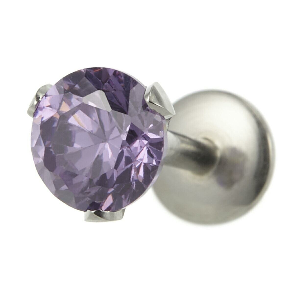 ピアス レディース メンズ 付けっぱなし 金属アレルギー対応 1粒 ボディピアス 3本爪 5mm石 16ゲージ 耳たぶ 軟骨兼用 クリスタル ブラック 紫 プレゼント ギフト 1個売り 片耳 大きめ 大きい 特大 メール便 送料無料 春夏秋冬 大人気