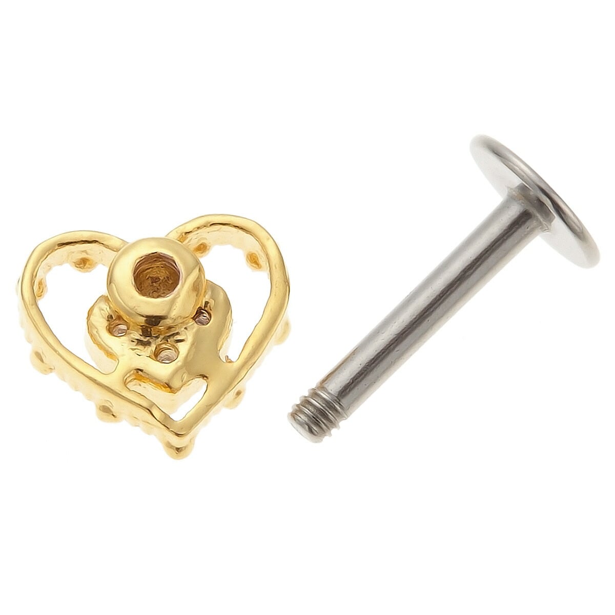 ハート型モチーフにキュービックジルコニアをセットしたボディピアスです。