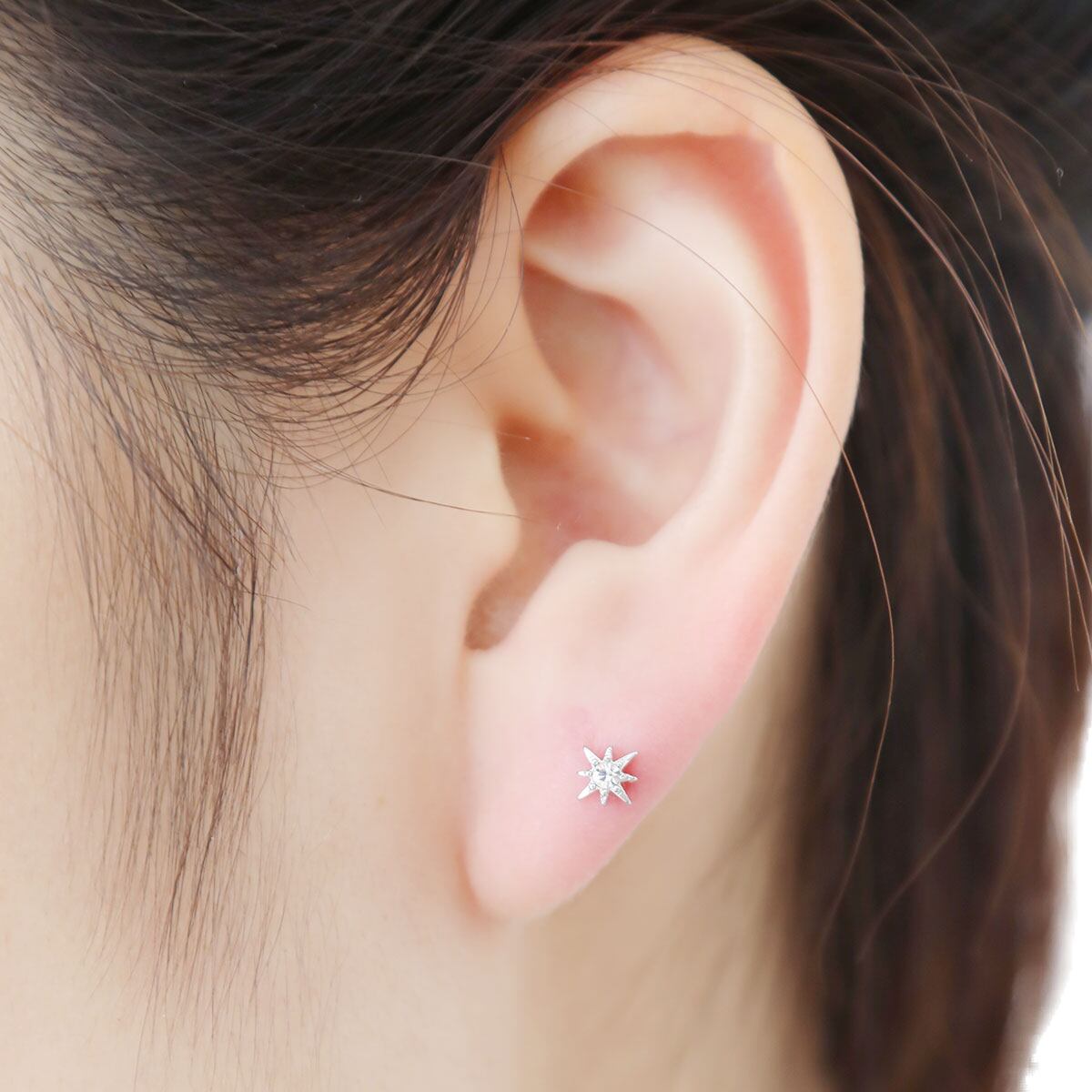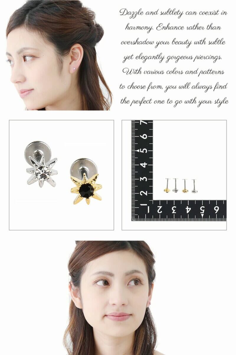ボディーピアス レディース 18G サージカルステンレス製 ラインストーン 光 キラキラ お肌に優しい 金属アレルギー対応 片耳用 1個売り 取れにくい 付けっぱなし 耳たぶ 軟骨兼用 小振り 小さめ シンプル 上品 記念日 誕生日 プレゼント ギフト メール便送料無料