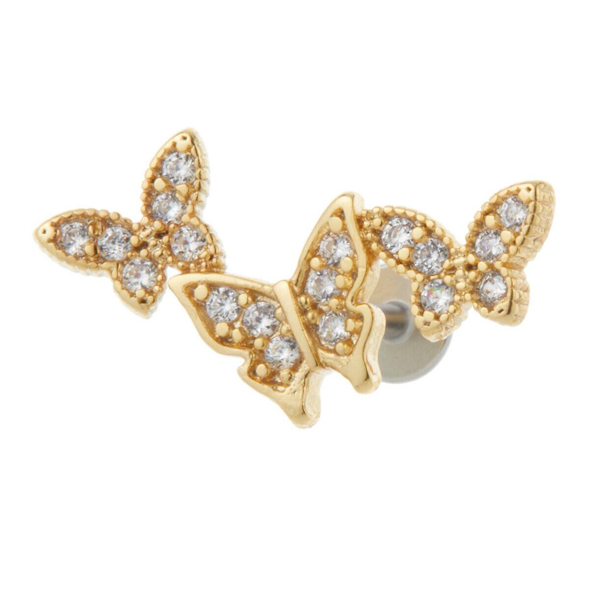 ボディピアス レディース サージカルステンレス製 キュービックジルコニア 片耳用 18G 1個売り 蝶 バタフライ 昆虫 虫 小さい ミニ お肌に優しい 金属アレルギー対応 取れにくい つけっぱなし 痛くない 耳たぶ 軟骨 オシャレ かわいい プレゼント ギフト メール便送料無料