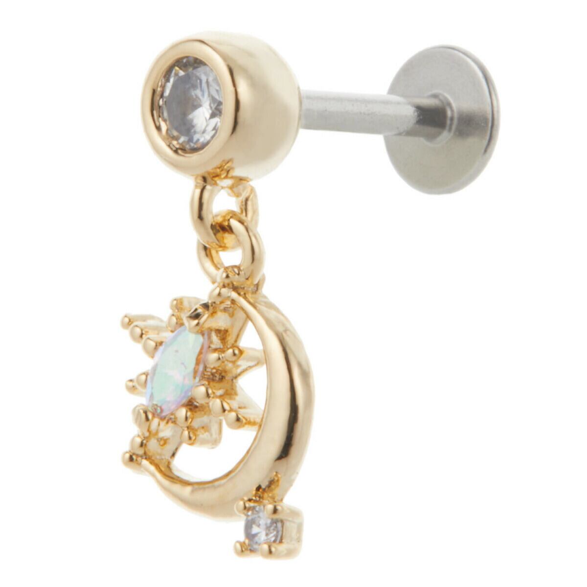 小さな三日月に星が寄り添う上品なボディピアスです。