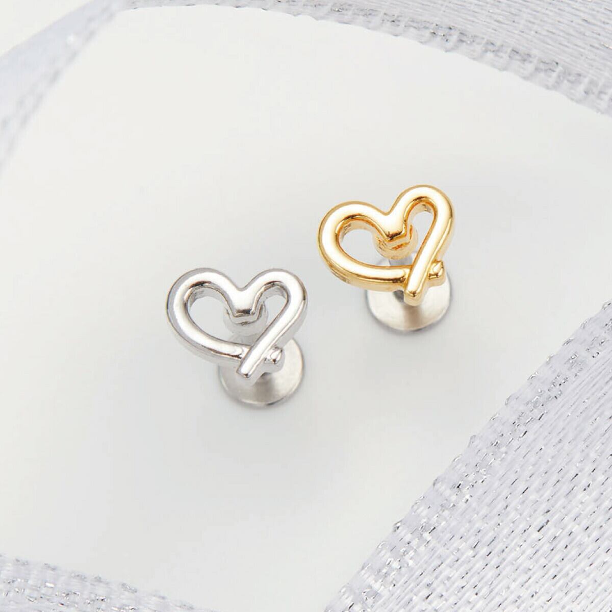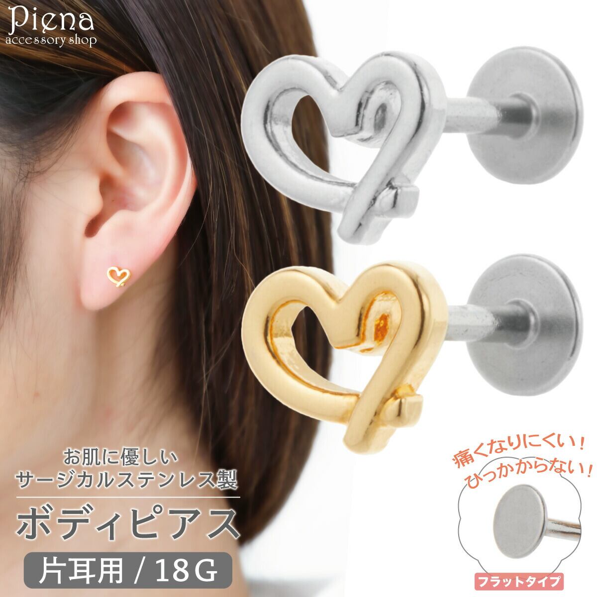 ボディピアス レディース サージカルステンレス製 18G 片耳用 1個売り オープンハート ハート型 小さい ミニ シンプル お肌に優しい 金属アレルギー対応 取れにくい つけっぱなし 痛くない 耳たぶ 軟骨 オシャレ かわいい プレゼント ギフト メール便送料無料