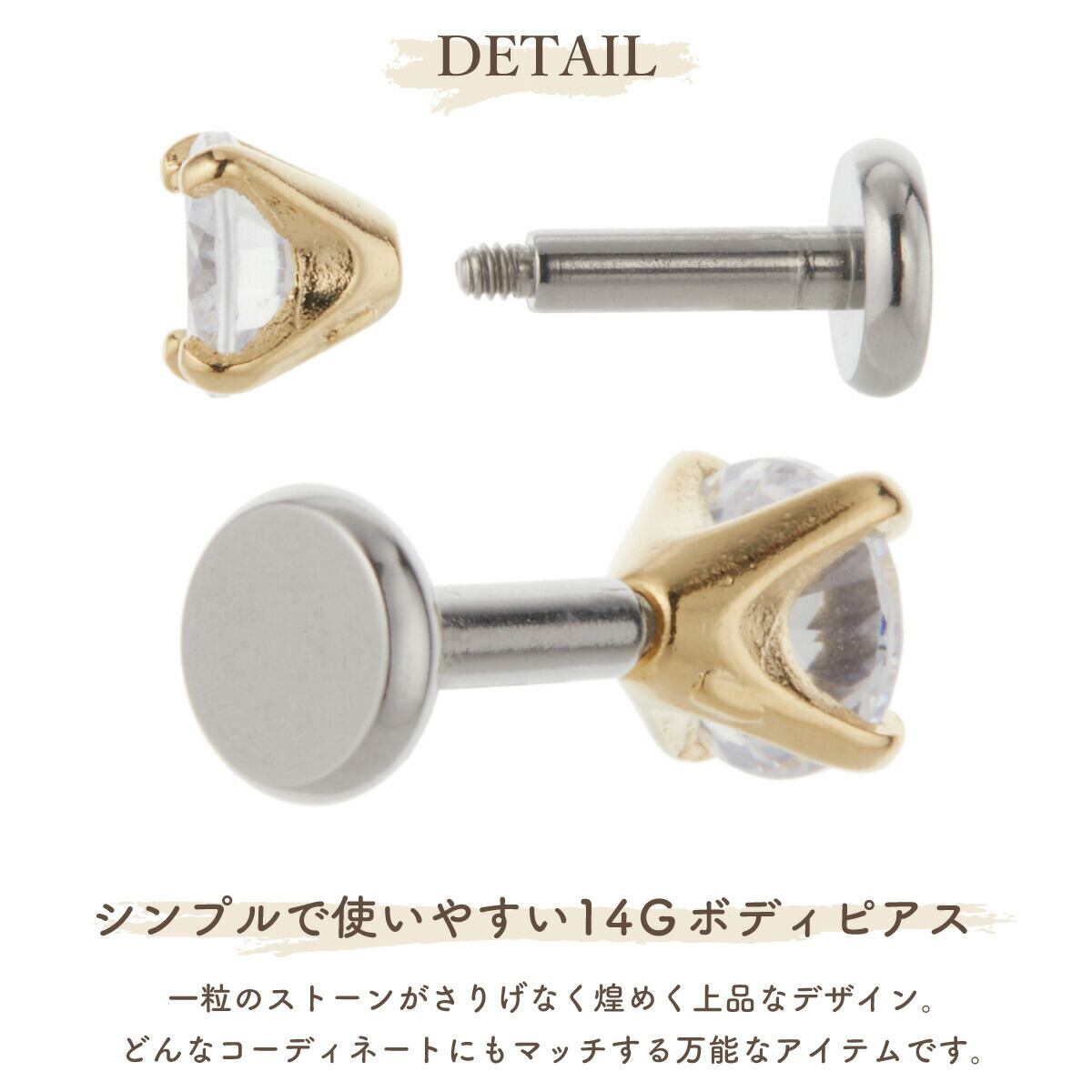 ボディピアス レディース サージカルステンレス製 片耳用 1個売り 14G ワンストーン 一石 一粒 シンプル キラキラ 裏面フラット お肌に優しい 金属アレルギー対応 取れにくい つけっぱなし 耳たぶ 軟骨 オシャレ かわいい プレゼント ギフト メール便送料無料