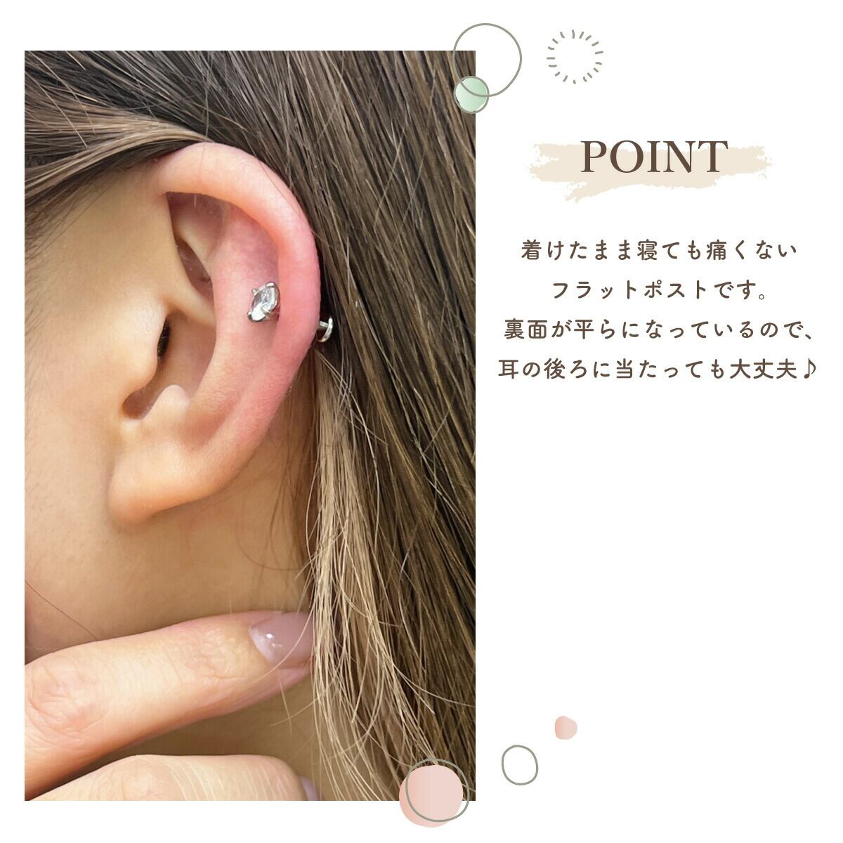 着けたまま寝ても痛くないフラットポストは、裏面が平らになっていますので、