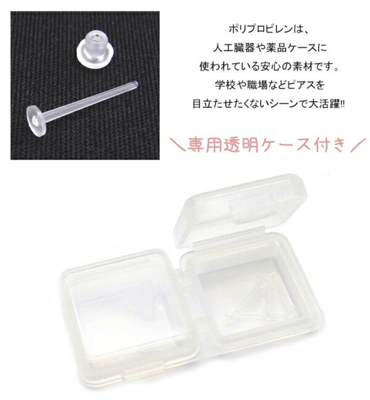 医療用樹脂のポリプロピレンを使用した透明ピアスです。