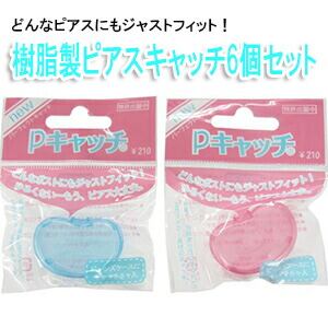 緩くなりにくい、特徴的な形をした樹脂製キャッチの6個セットです。
