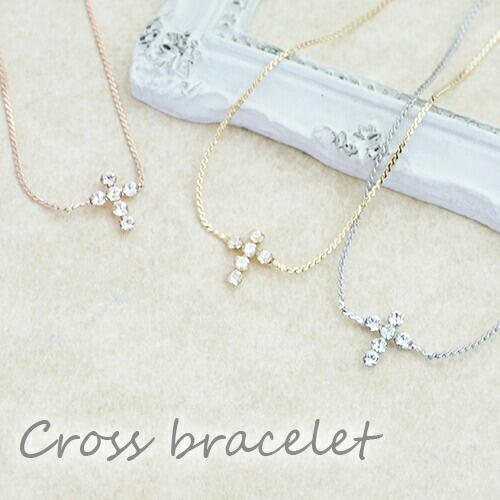 ブレスレット レディースニッケルフリー 金属アレルギー対応 日本製 スエッジチェーン ラインストーン シンプルクロス ‐シルバー ‐ゴールド ‐ピンクゴールドメール便 送料無料 プレゼント 秋冬 大人気